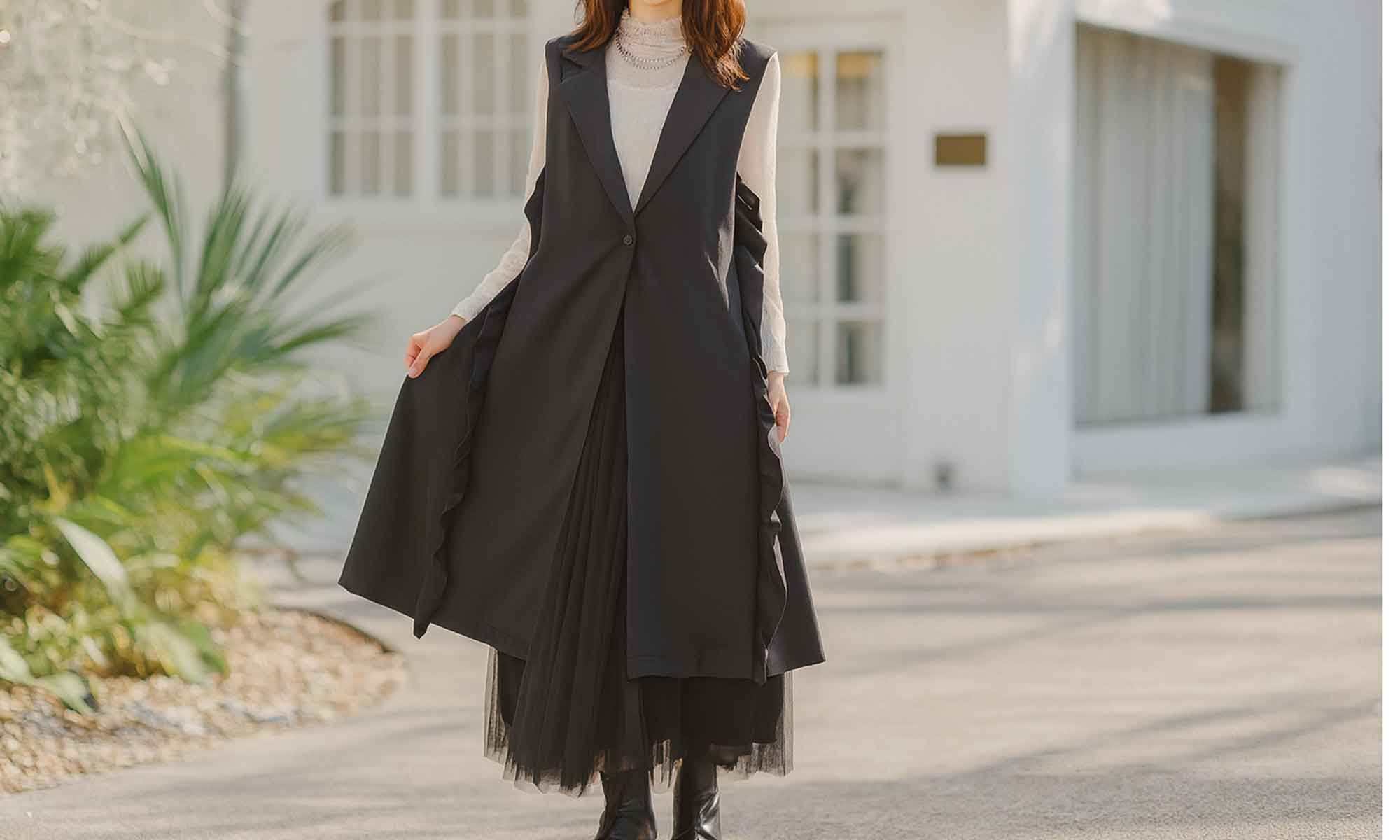 【フリーサイズ】サイドフリル テーラーベストワンピース|華やかモード・レイヤードに最適 BRILLANTE 201528 2025AW