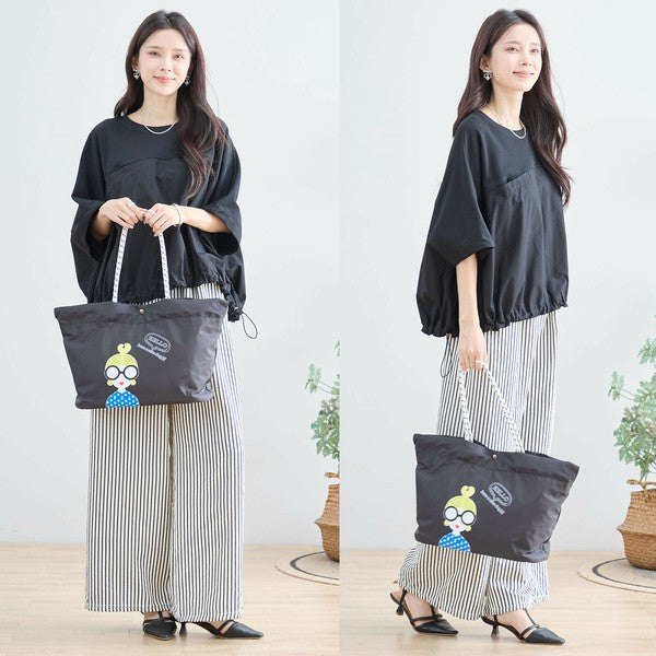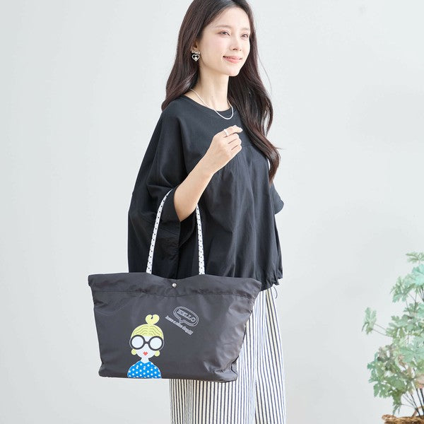 【ガールイラスト】ナイロントートバッグ|内外ポケット付き・軽量レジャー・TRUBE N92-104