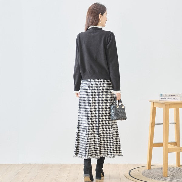 【M〜L】幾何学柄スリーブ切替ニットチュニック|配色デザイン・大人きれいめ・TRUBE・N15-262A