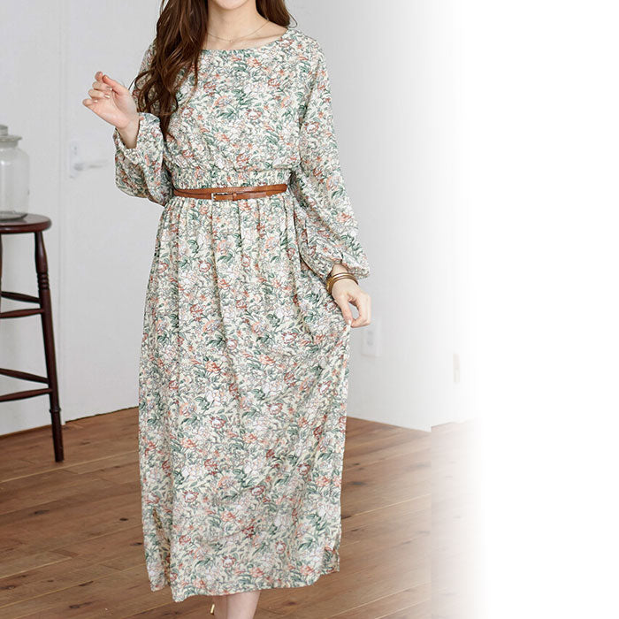 【AW】ジョーゼット長袖 ワンピース 花柄 無地 フレア 6332935