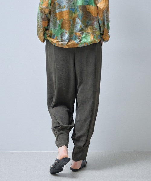 バナナパンツ ドレープ とろみ素材 テーパード ワイド ウエストゴム ゆったり 春夏