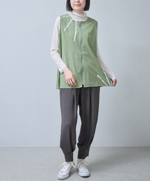 ペプラム フロッキードット ベスト ジップアップ ノースリーブ ジレ レイヤード 春 夏