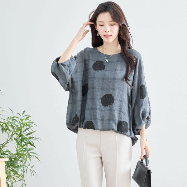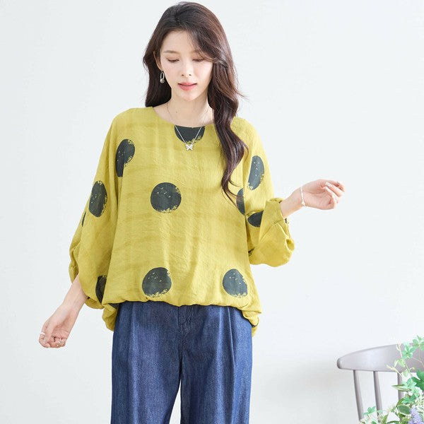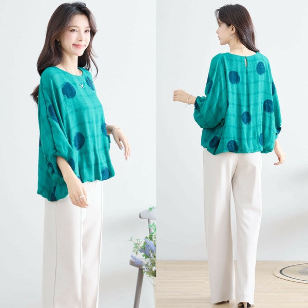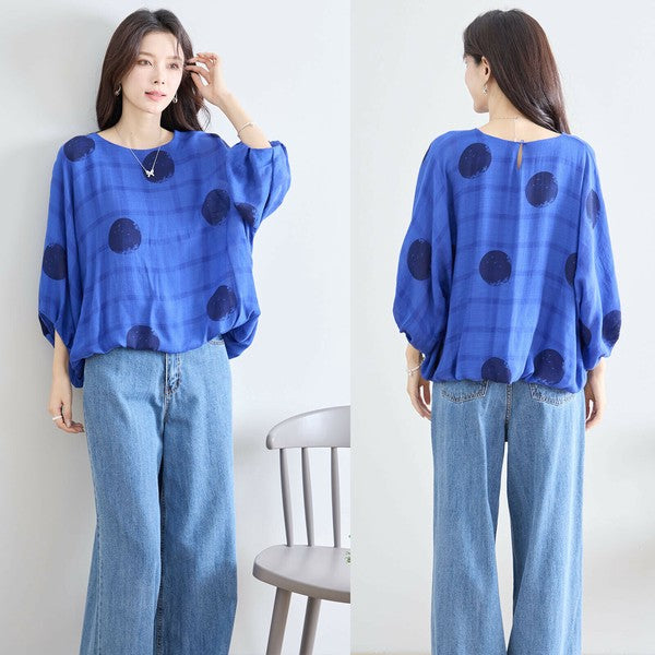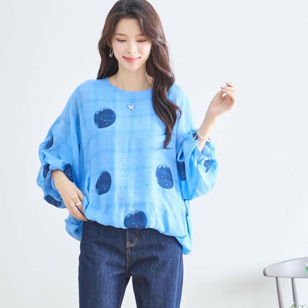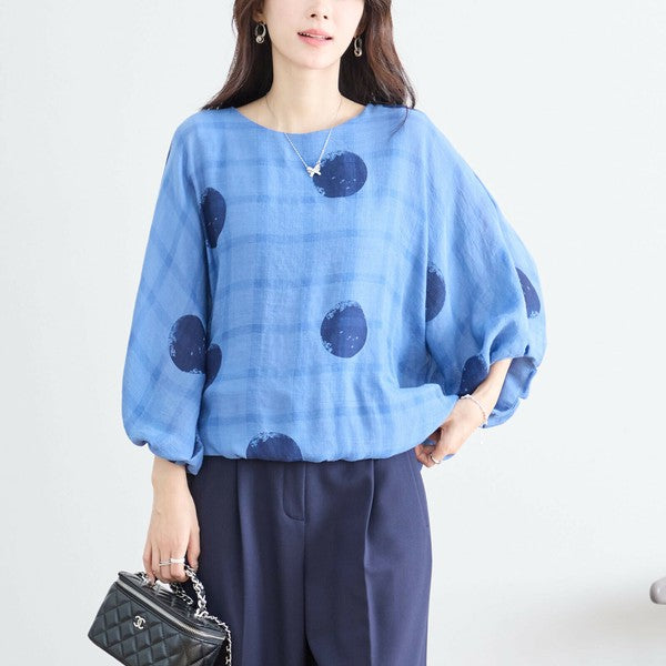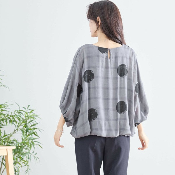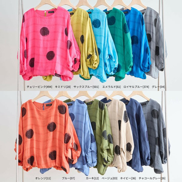 【M〜L】ポリエステル ドット柄バルーンスリーブブラウス|体型カバー 春夏 涼感 N13-286