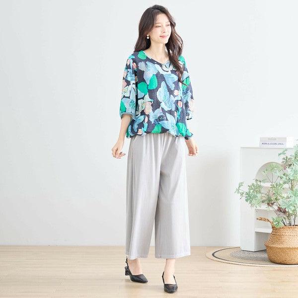 アートのようなリーフ&フローラル柄が視線を惹きつけ、夏の装いを格上げしてくれます。シンプルなボトムと合わせるだけでおしゃれ上級者に。