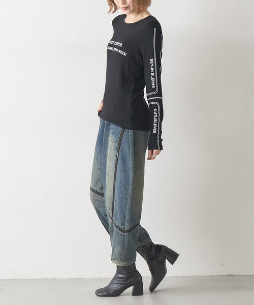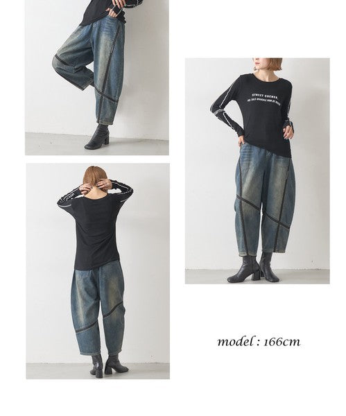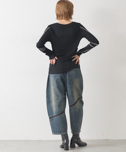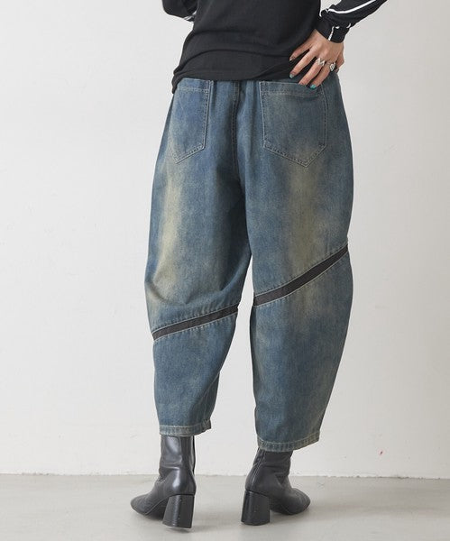 ● 異素材ライン切替が映えるデザインデニム