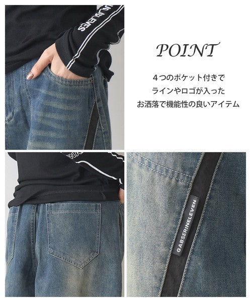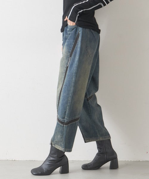 【1/中旬発送予定】【フリー】異素材ライン切替デニムパンツ|BRILLANTE