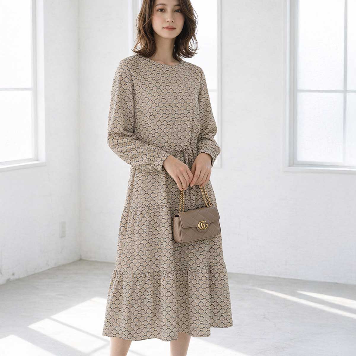 【クラシカルな気品を纏う。チェーン柄ティアードワンピース】