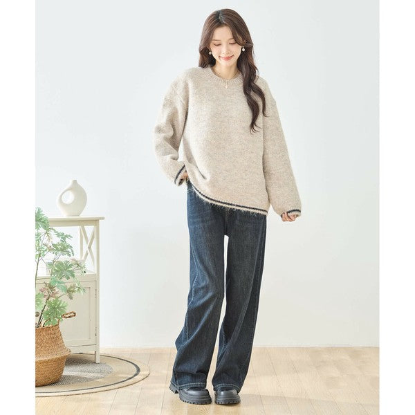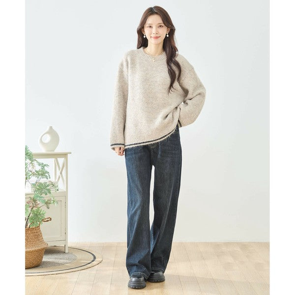 【M〜L】パール付きフリルネックニット|amie studio レディース 秋冬 長袖 セーター エレガント N12-902
