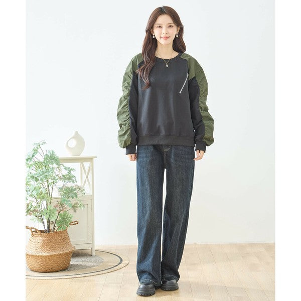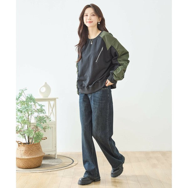 程よくゆとりのあるストレートシルエットで脚のラインを拾わず体型カバー
