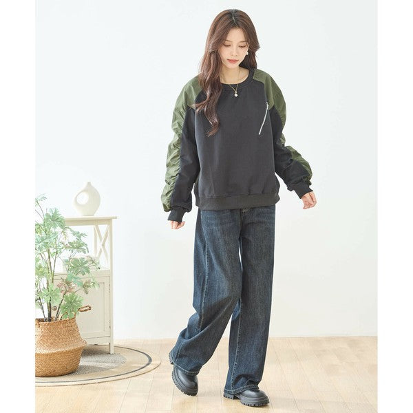 【Mサイズ】デザインドルマンニットプルオーバー|Xライン切替・体型カバー・柔らかニット・秋冬トップス・Y-0173