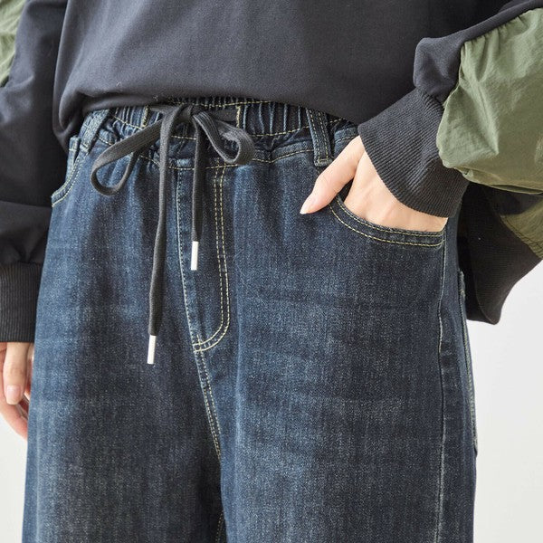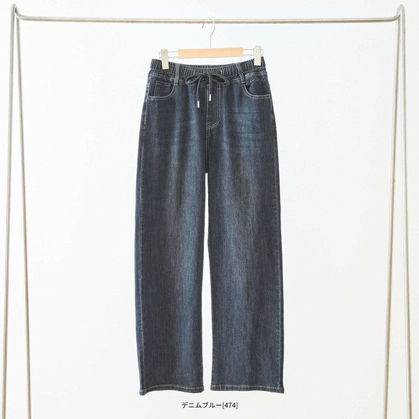 ウエストをゴム+ドローストリング仕様にしたリラクシーなデニムパンツ