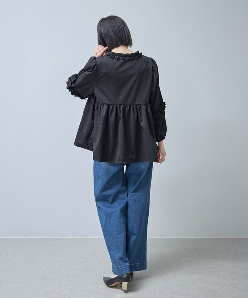 カジュアルと甘さの絶妙バランス。大人の余裕を纏う綿100%フリルデニムシャツ