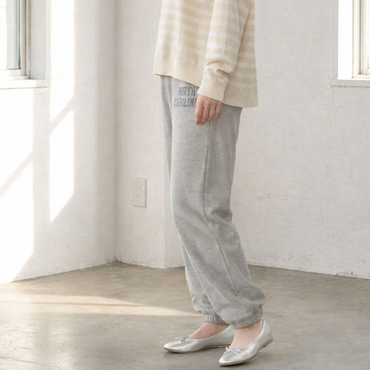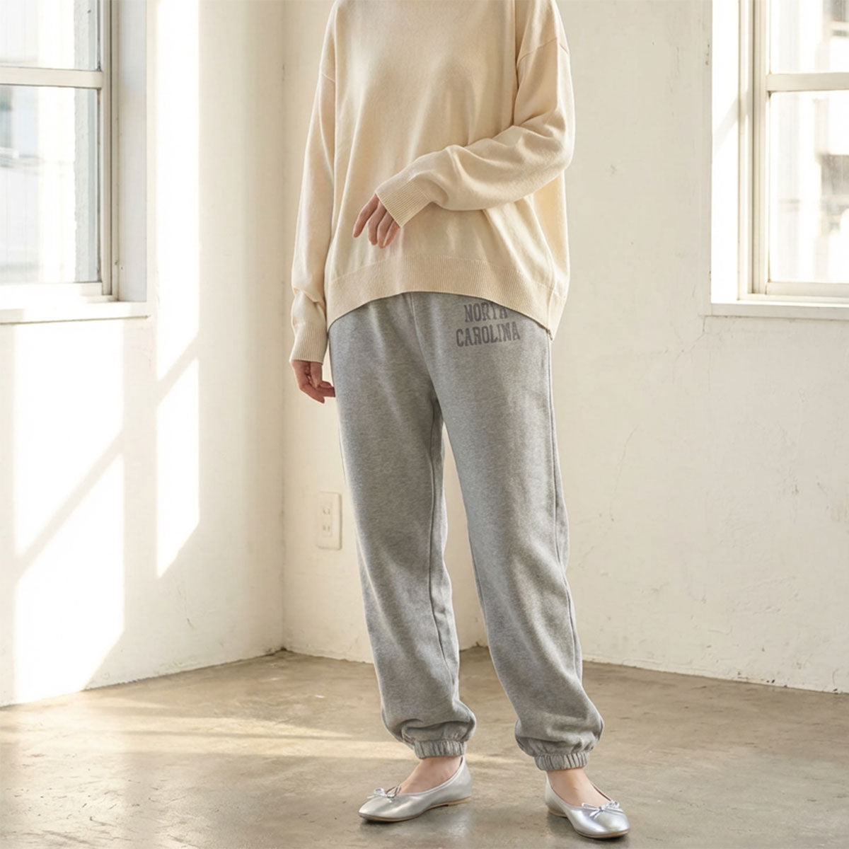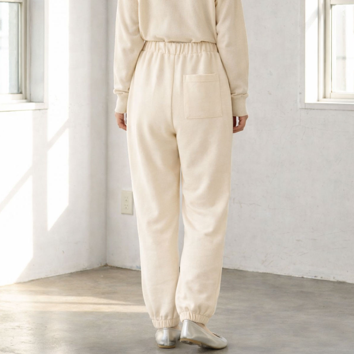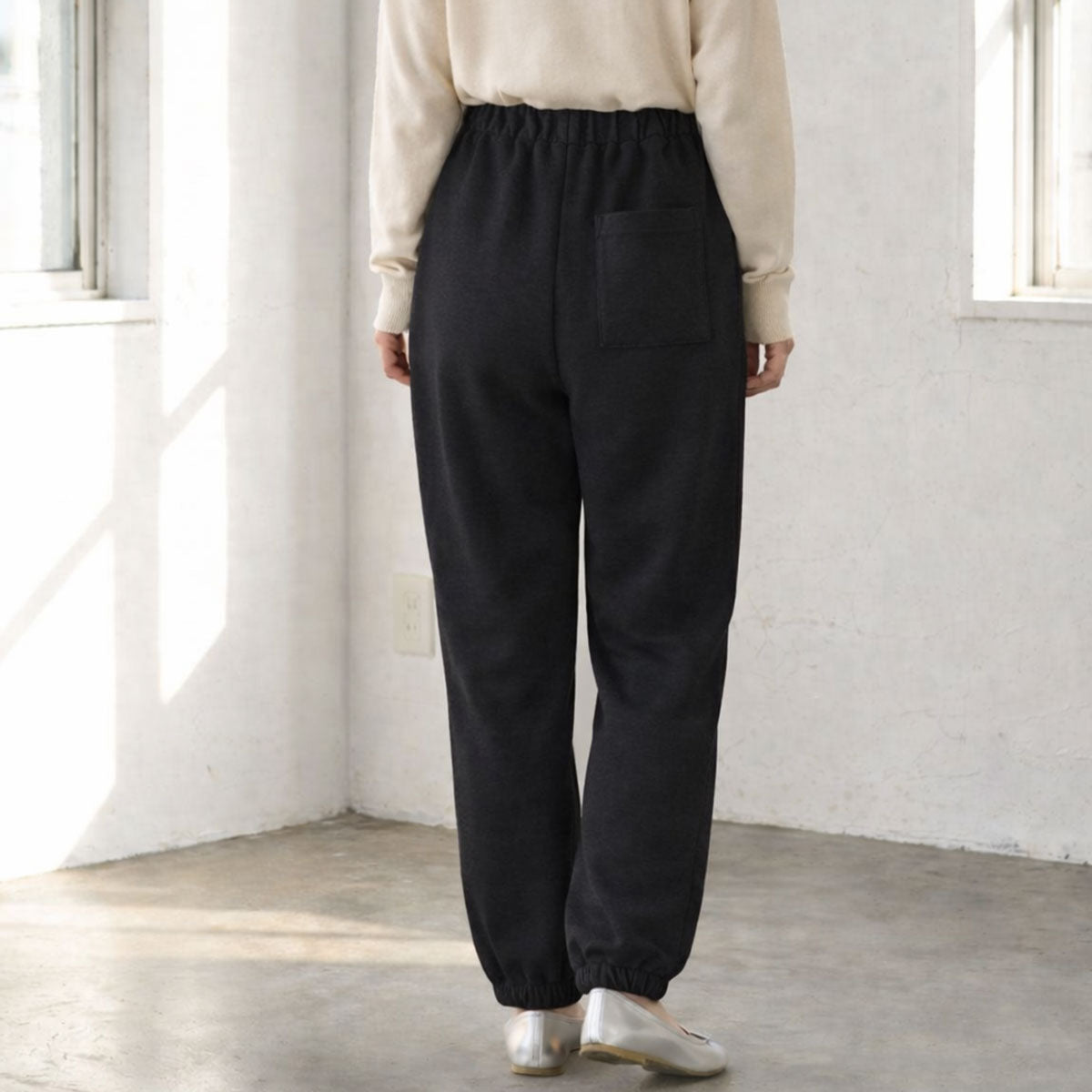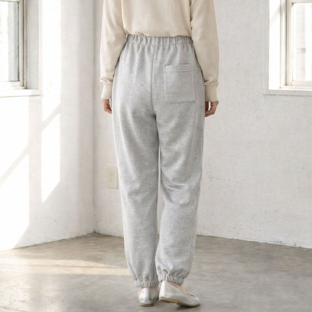 ・スペック: 裏毛素材 / 洗い加工 / ウエスト総ゴム&ドロスト / ポケットあり / 裾リブ仕様 / シンプルロゴ入り