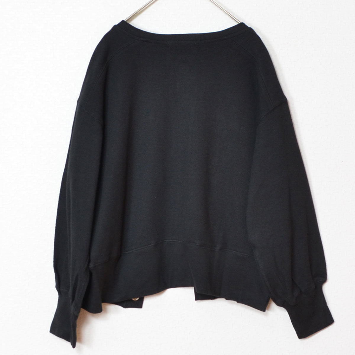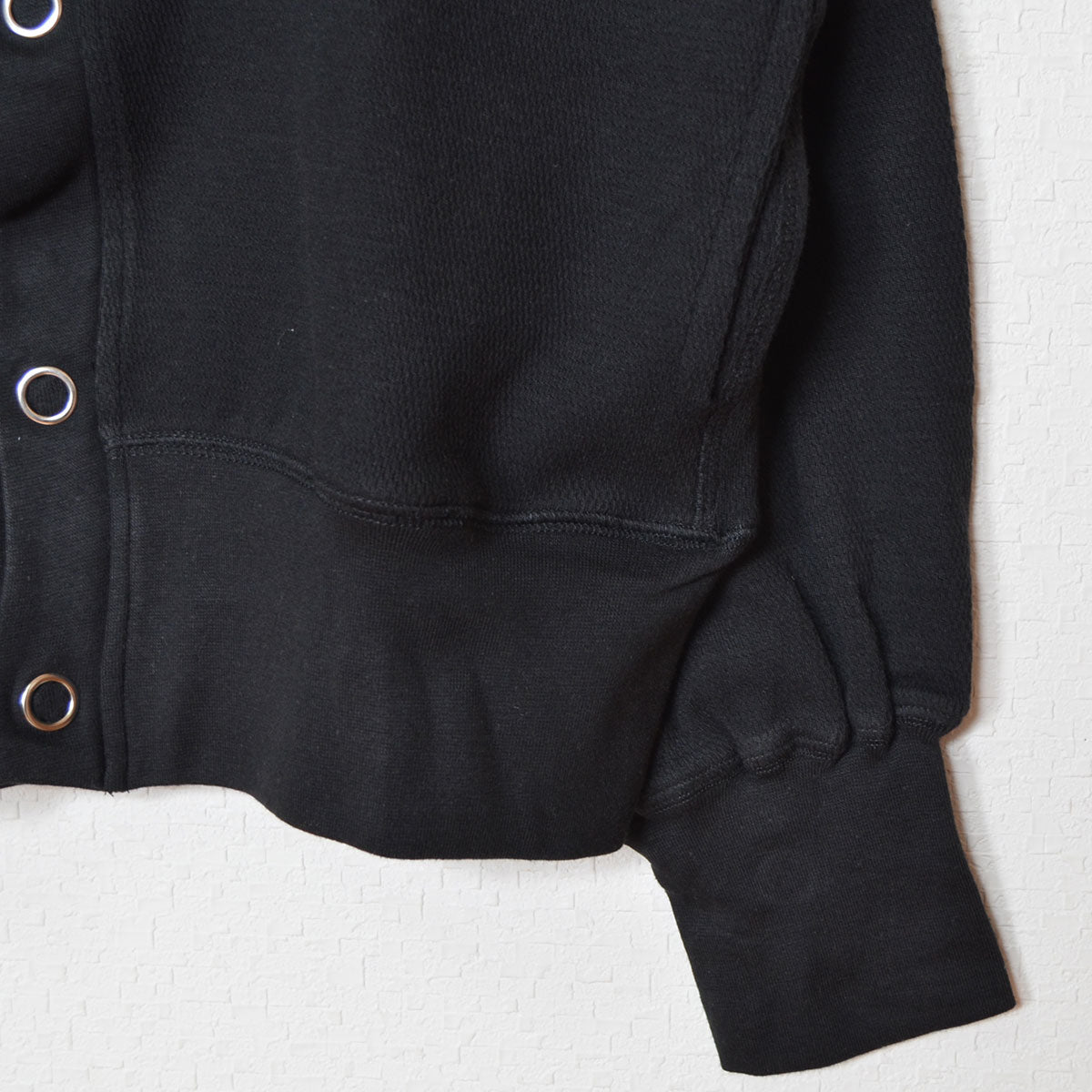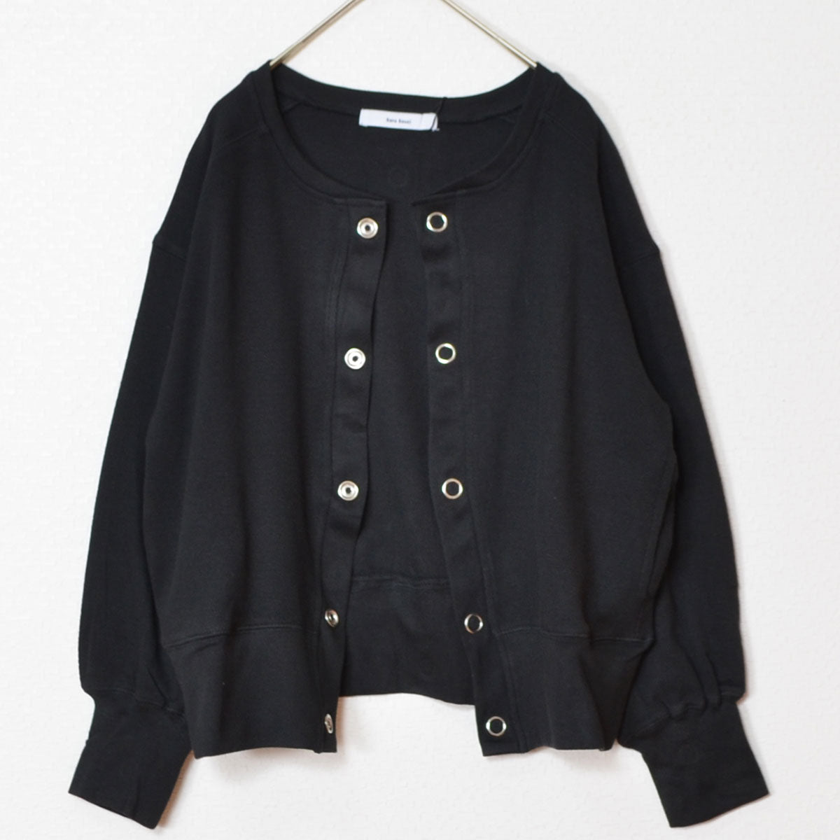 ・アクセントになる「スナップボタン」 フロントは着脱が簡単なシルバーのスナップボタン仕様。カーディガンとしてだけでなく、ボタンを閉めてプルオーバーのように着ても様になります。