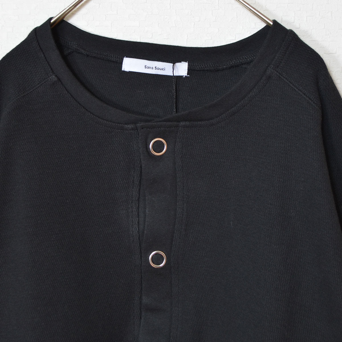 表面のポコポコとしたハニカム素材が可愛いSans Souci 34+の新作カーディガン。綿97%の優しい着心地と、シルバーのスナップボタンが特徴。ボリューム袖で大人可愛いシルエットを叶えます。