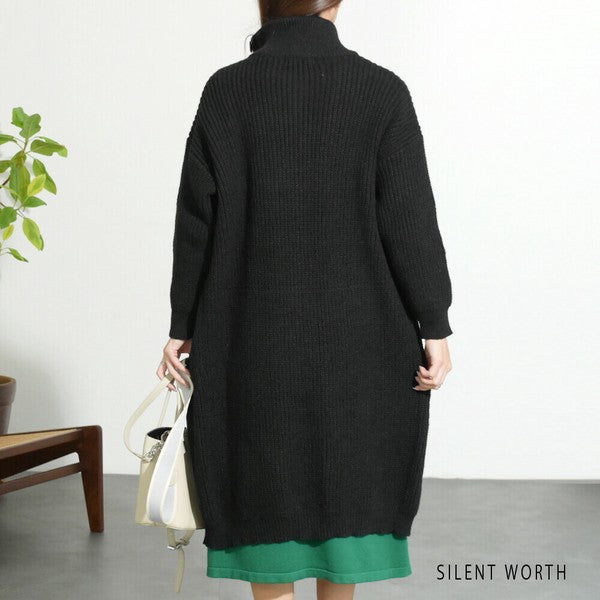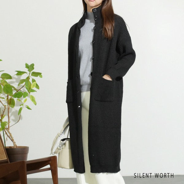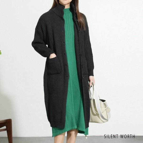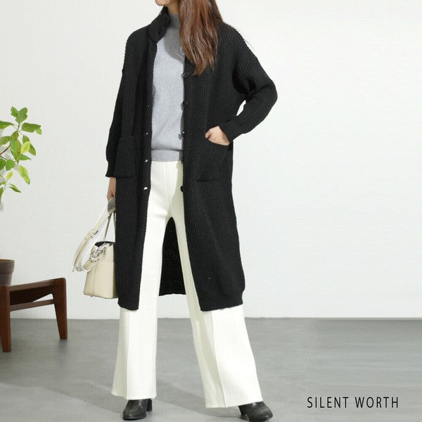 【Mサイズ】畦編みロングニットカーディガン|SILENT WORTH レディース 羽織り 秋冬 長袖 ロング丈 N-2963