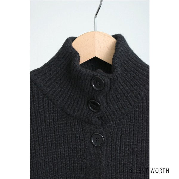 高めのネックラインが首元を包み込み、暖かさと上品さをプラス