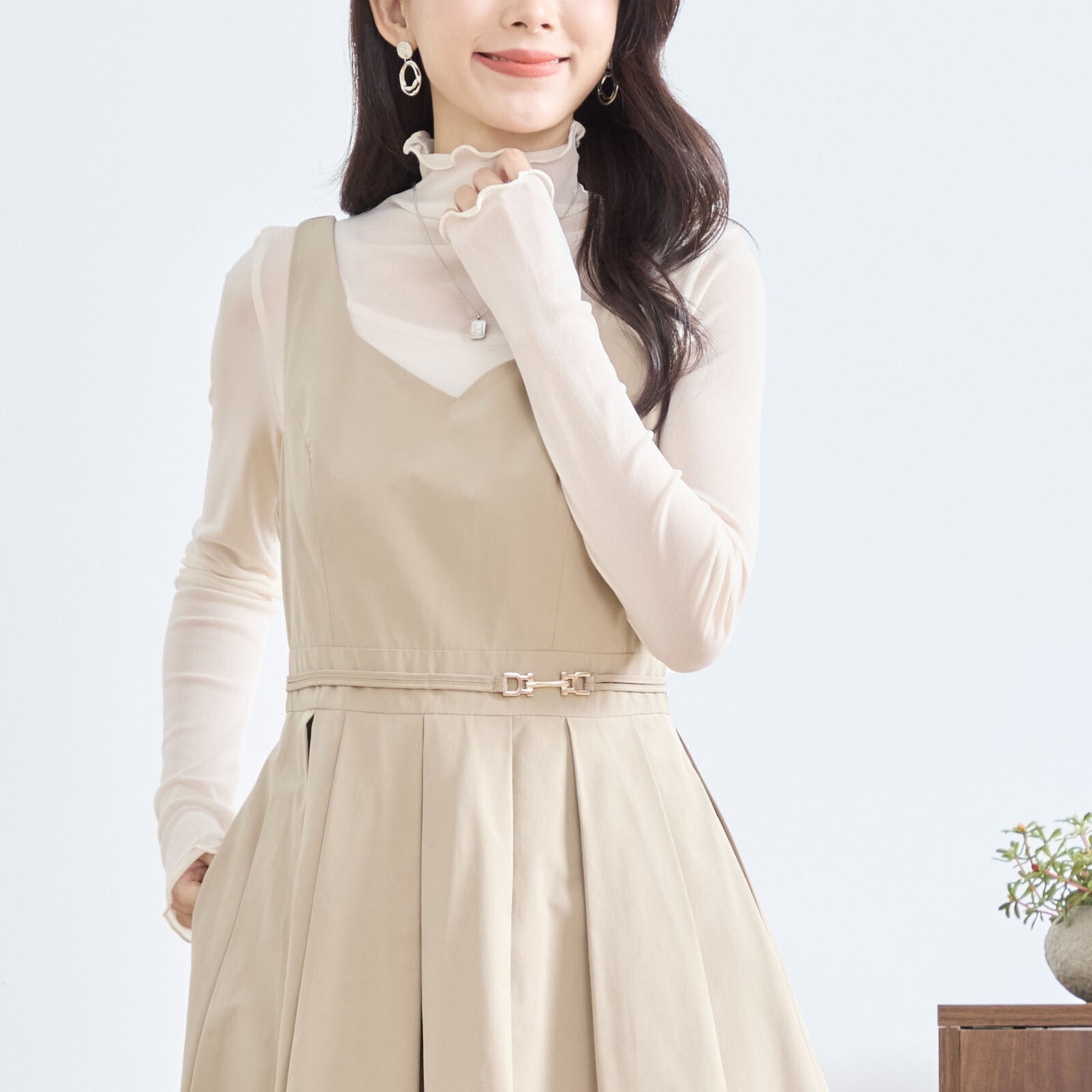 程よくフィットするストレッチ素材で、窮屈感がなく快適な着心地。シンプルなシルエットながら、インナーに取り入れるだけで女性らしいニュアンスをプラスしてくれるのが魅力です。