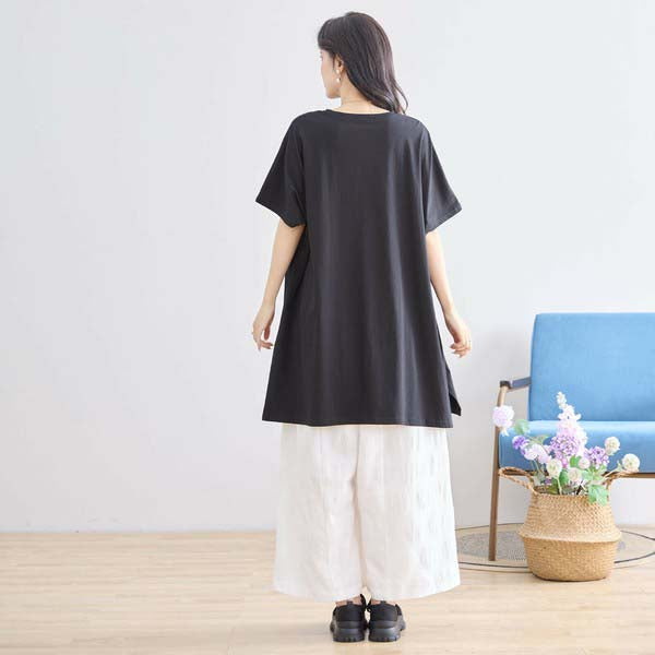【M〜L】異素材配色デザイン アシメ切替プルオーバー|ゆったり体型カバー カジュアルトップス Z-094