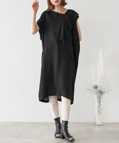 【M〜L】フリル襟ノースリーブベスト|体型カバー Aライン 軽やか涼感 N12-783