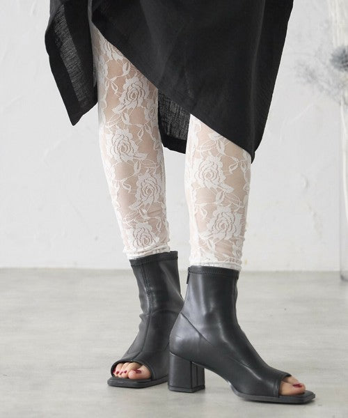 繊細な花柄レースを贅沢に使用した7分丈レギンス