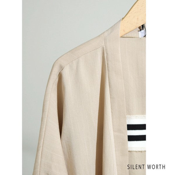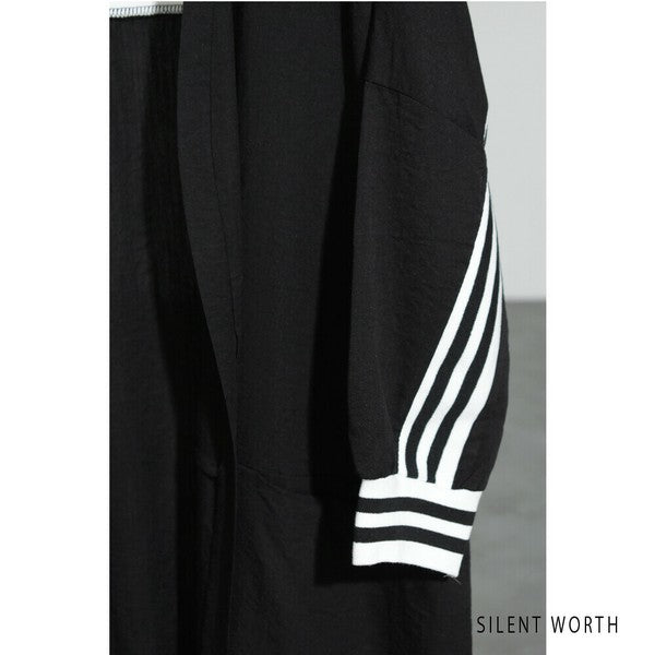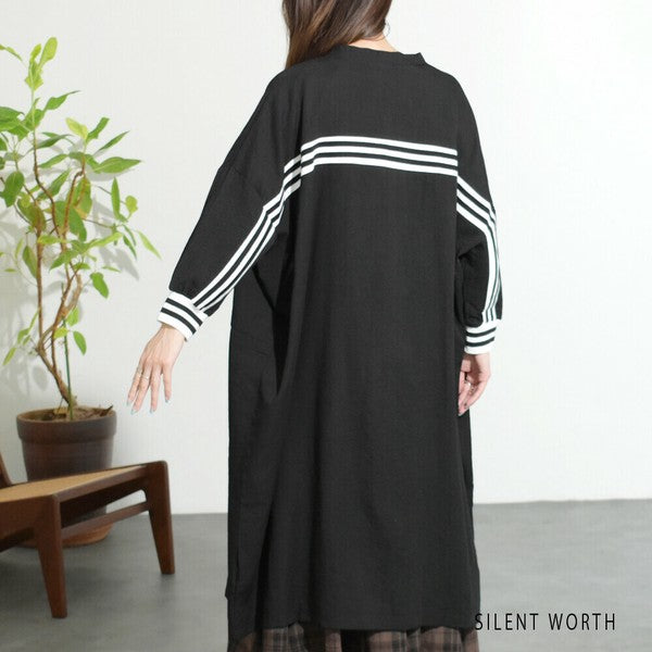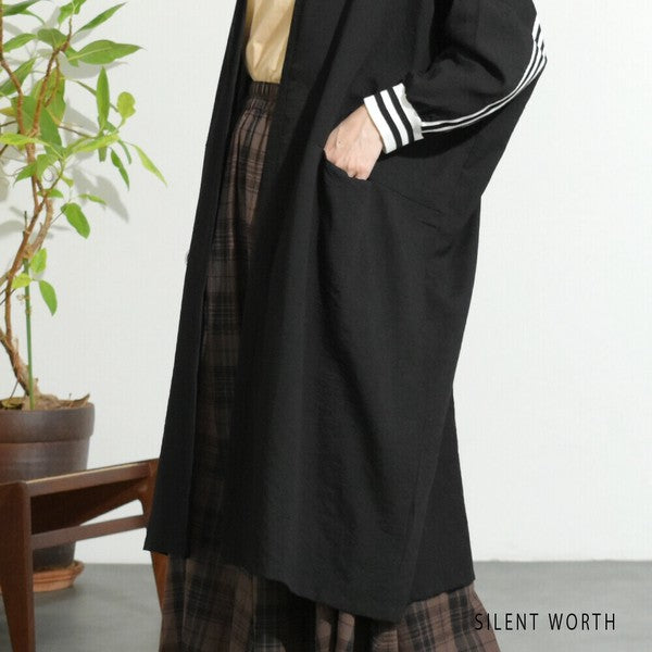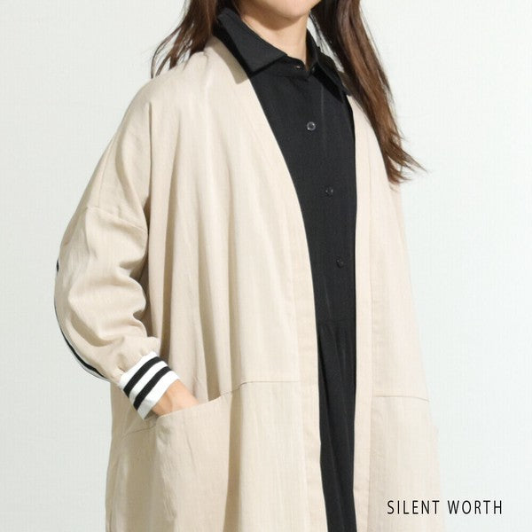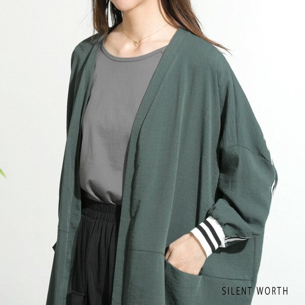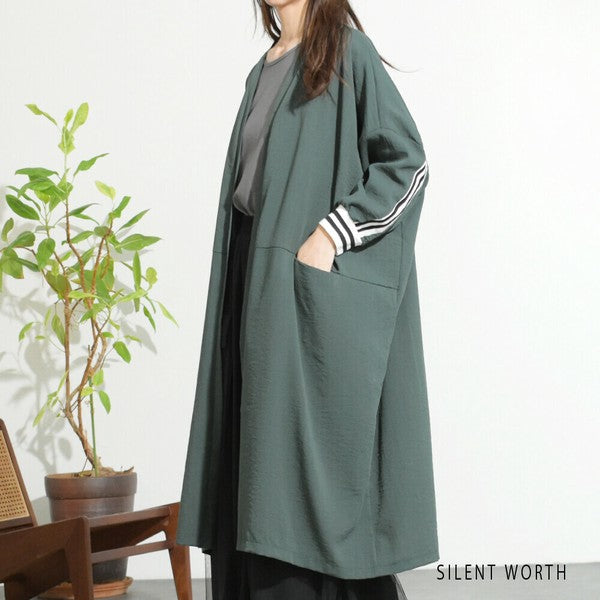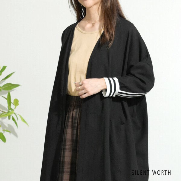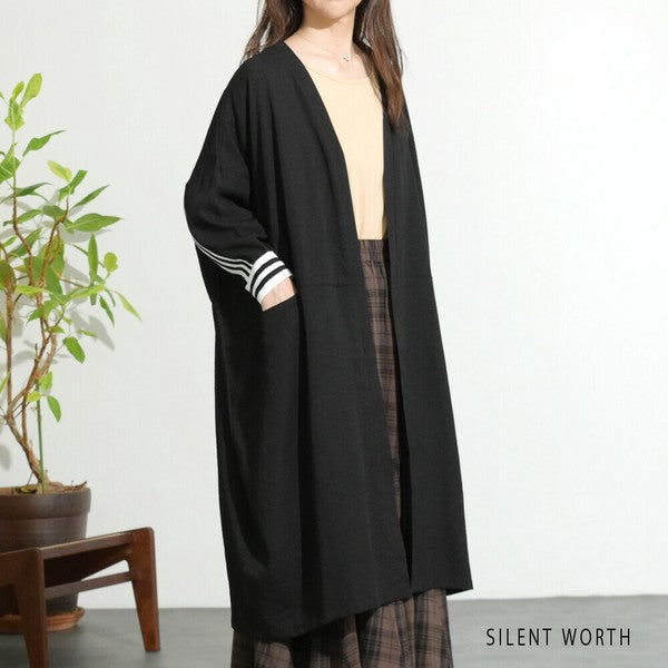 袖口から背中を通る配色ラインが印象的なロングカーディガン