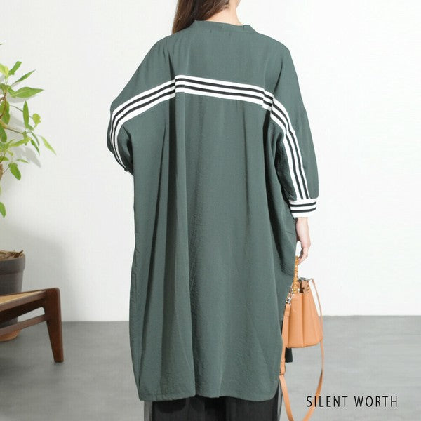 背中を通る配色ラインがスタイリッシュな印象のロングカーディガン。
