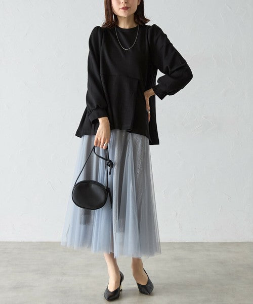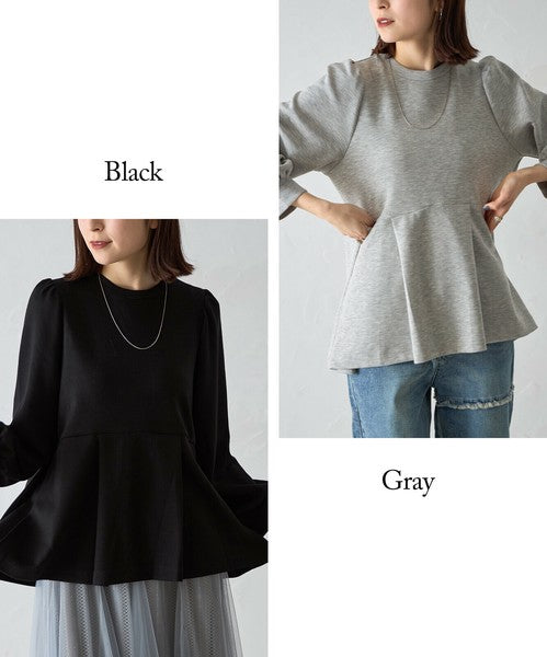 【chou chou】パフスリーブ切替ペプラムカットソー