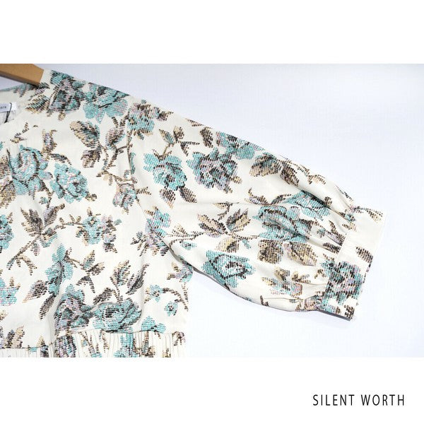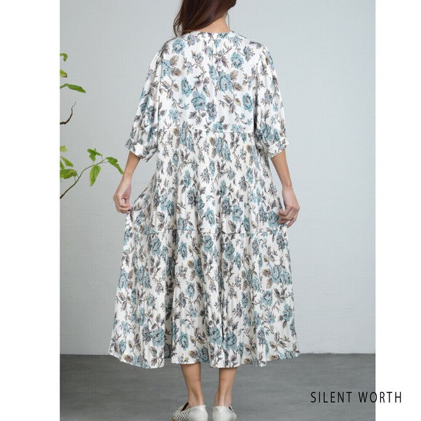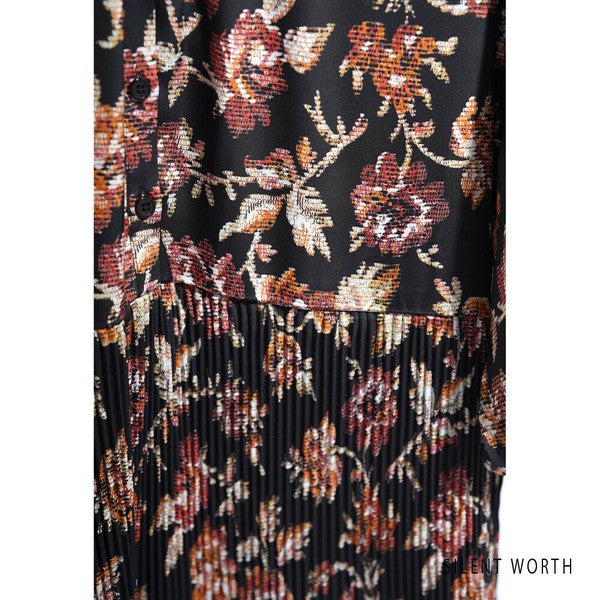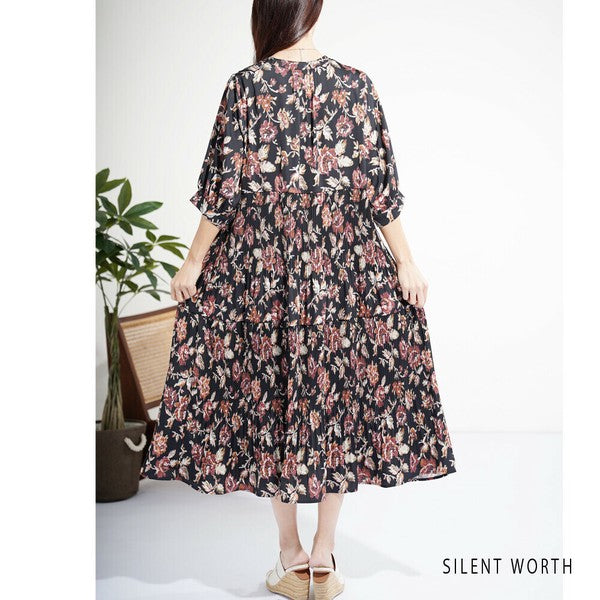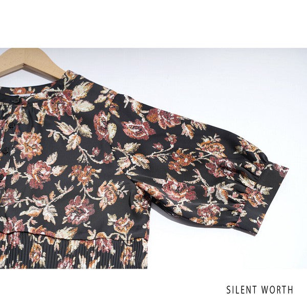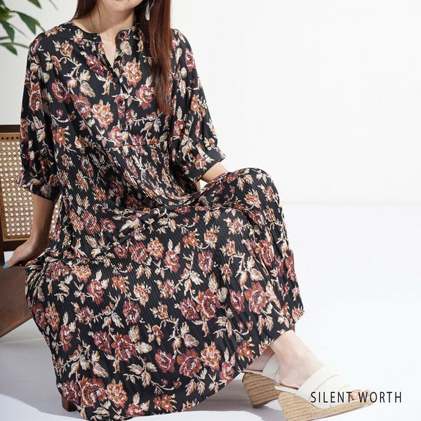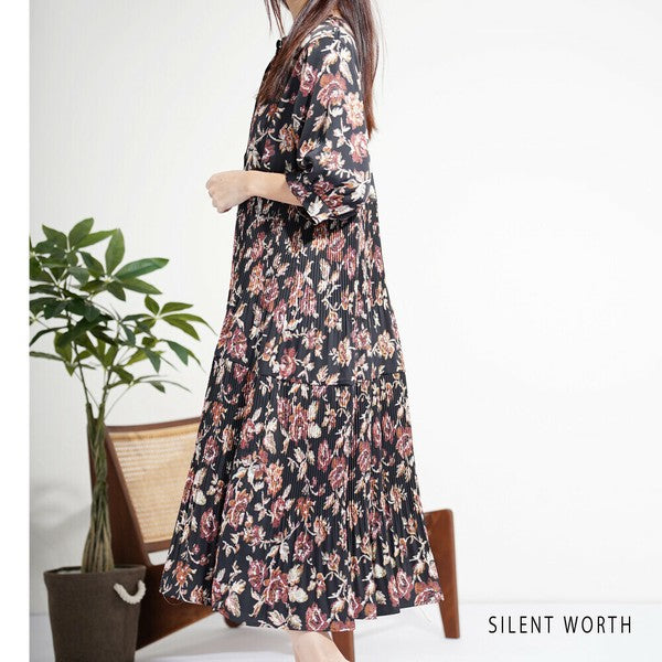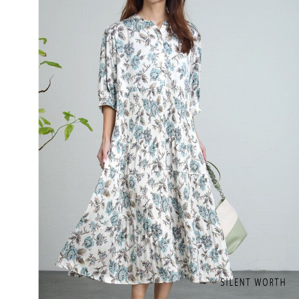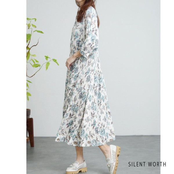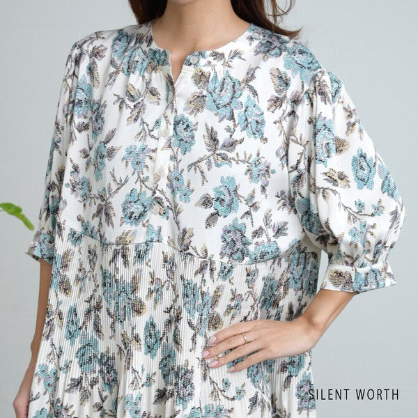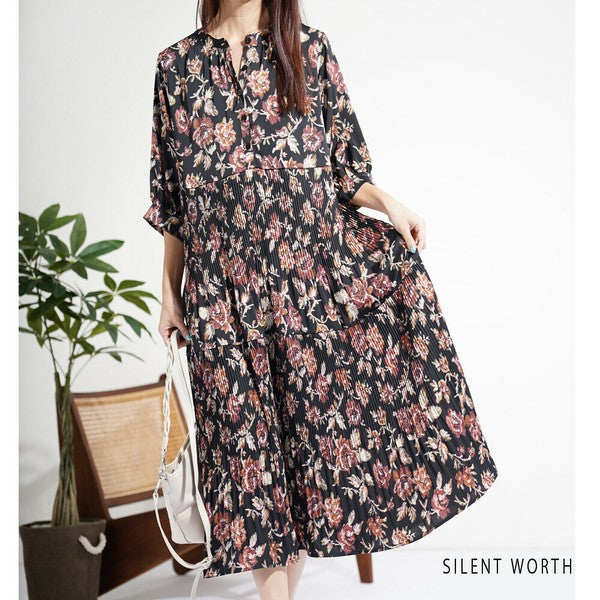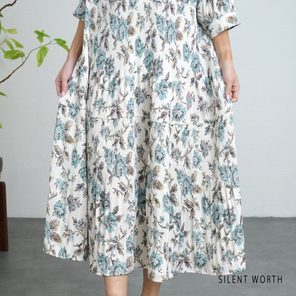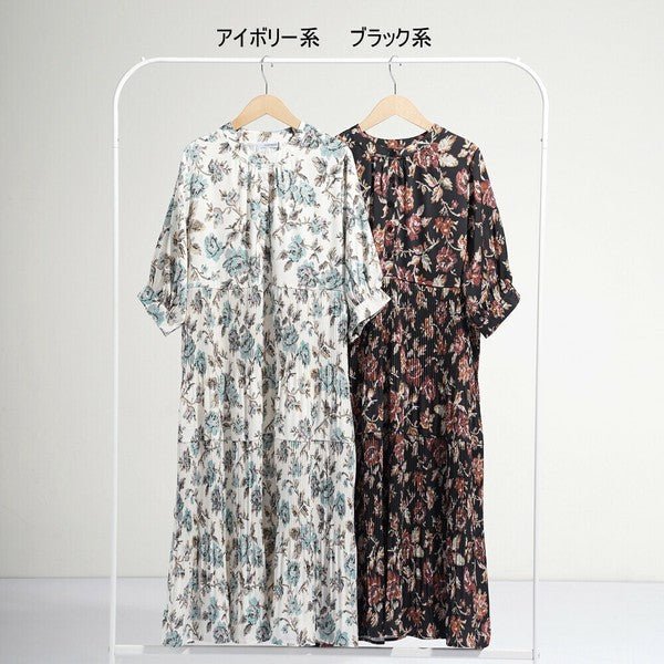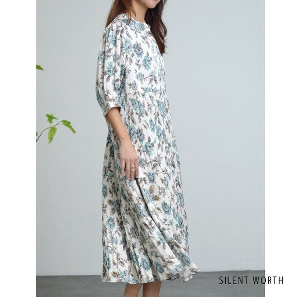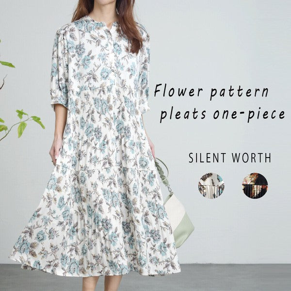 【M】花柄プリーツ切替ワンピース|優雅な揺れ感・大人フェミニン・SILENT WORTH N-3115