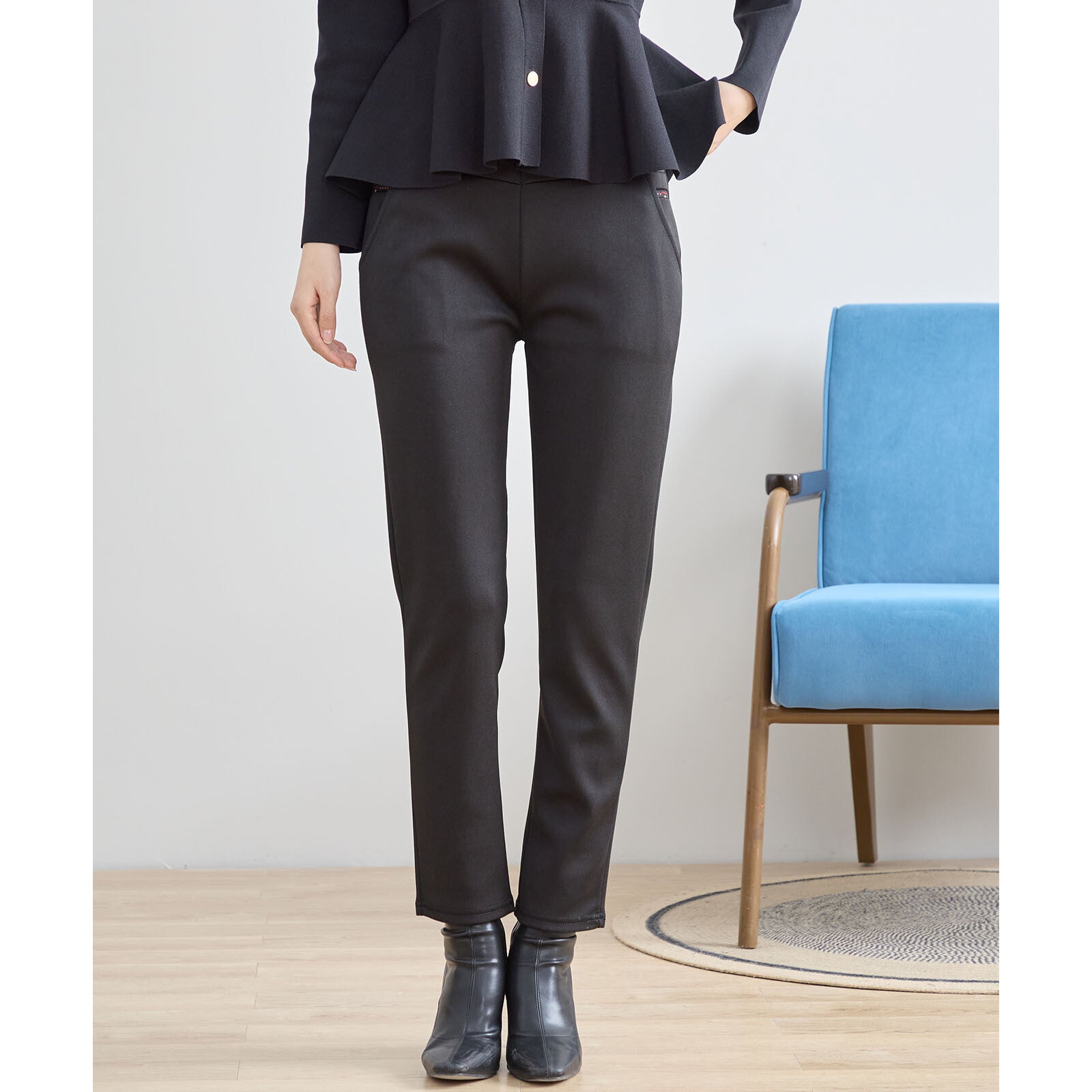 美しいシルエットと抜群のフィット感を兼ね備えたエレガントなストレッチパンツ。ストレッチ素材を使用しているため、動きやすさと履き心地を両立しています。ポケット部分のさりげないディテールがシンプルながらも上品な印象を与え、オフィスやお出かけにもぴったり。どんなトップスとも合わせやすく、幅広いコーディネートに活躍する一着です。