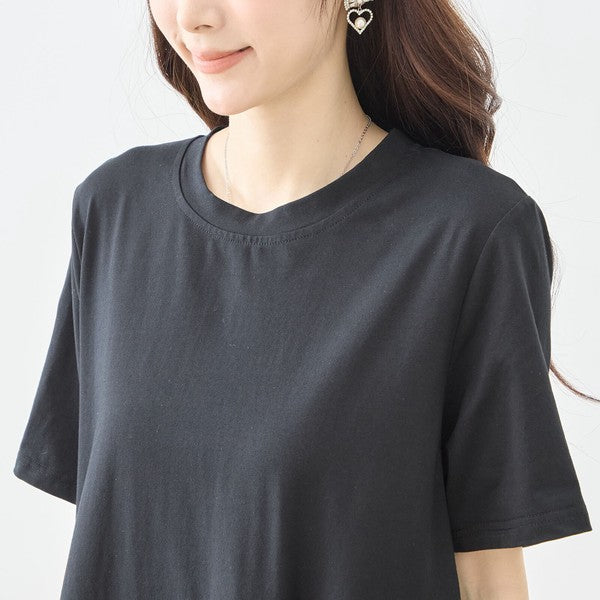 バックプリーツ Tシャツ 半袖 綿100 ゆったり 体型カバー 着痩せ M L
