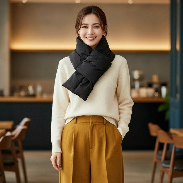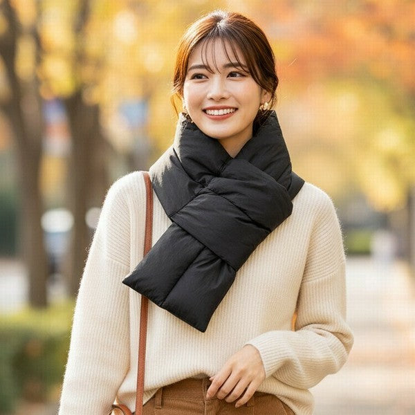 寒い季節に頼れる、軽くてあたたかい中綿キルティングティペットマフラー。
