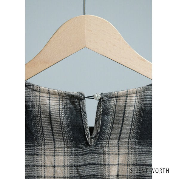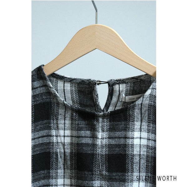 【Mサイズ】大判チェック柄バルーンワンピース|体型カバー・裏地付き・秋冬・SILENT WORTH・C-3198