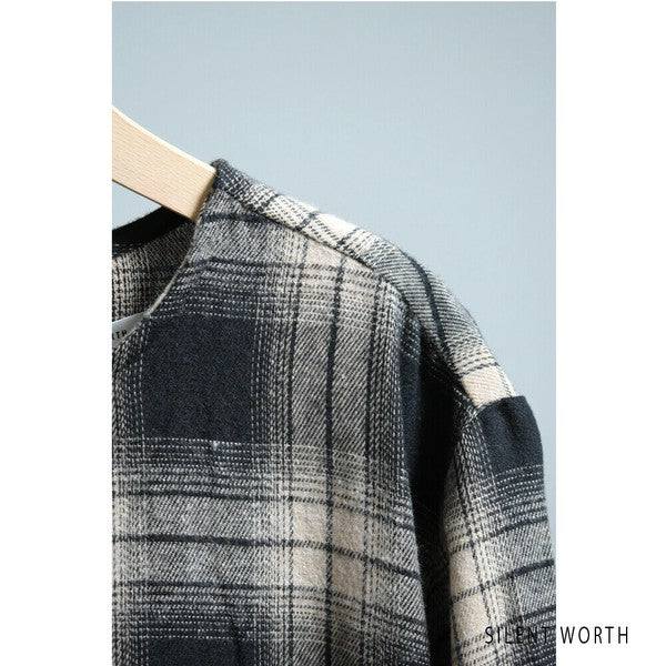 ●起毛感のあるチェック×無地の異素材切替デザイン