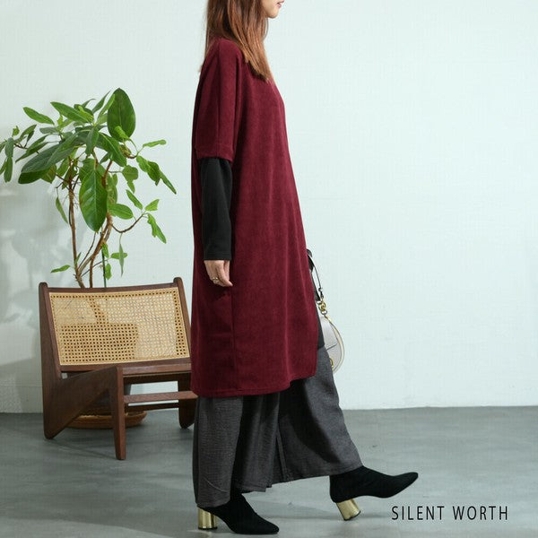 レギンスやワイドパンツを合わせたレイヤードスタイルも素敵です。