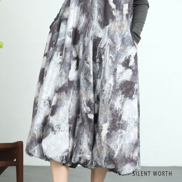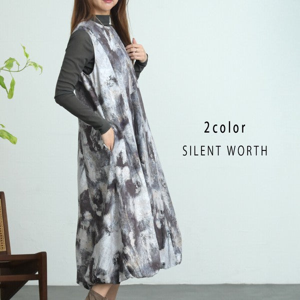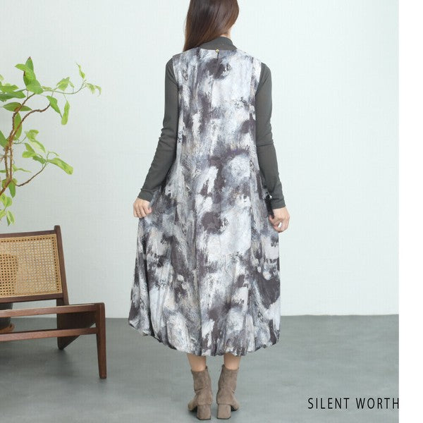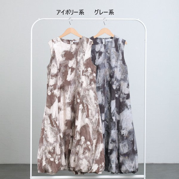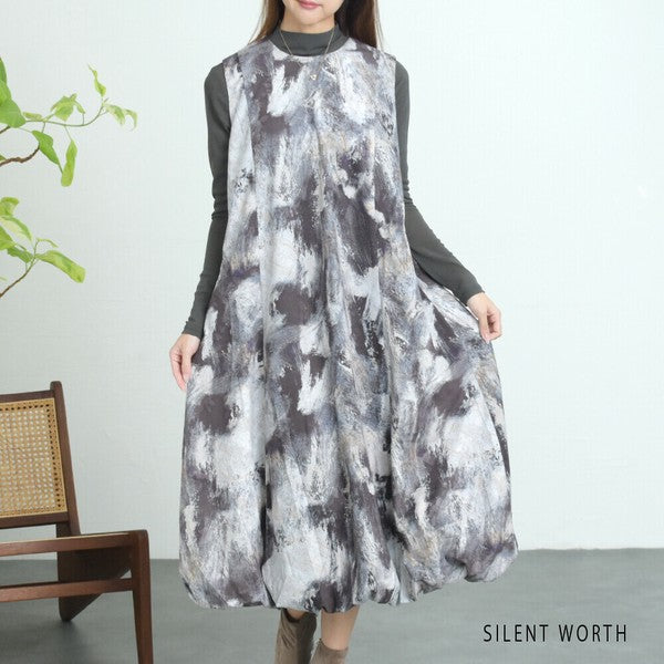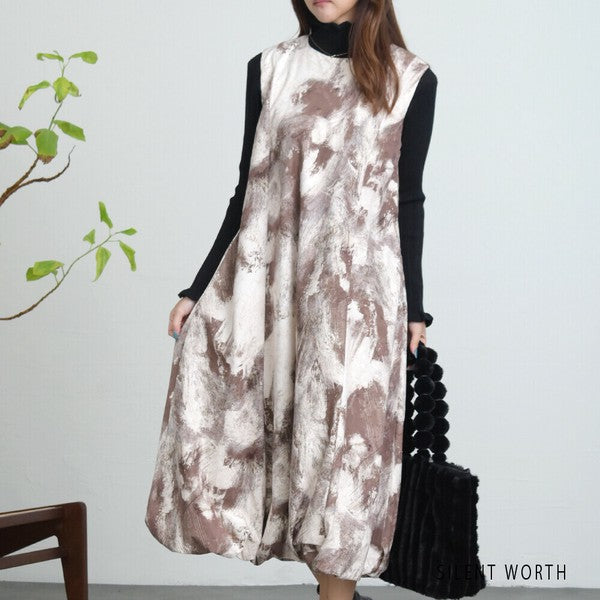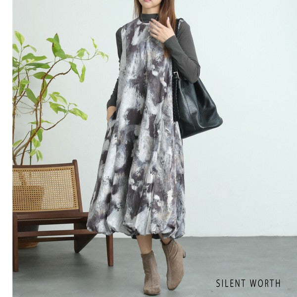 落ち感のあるシルエットが上品な総柄バルーンワンピース。