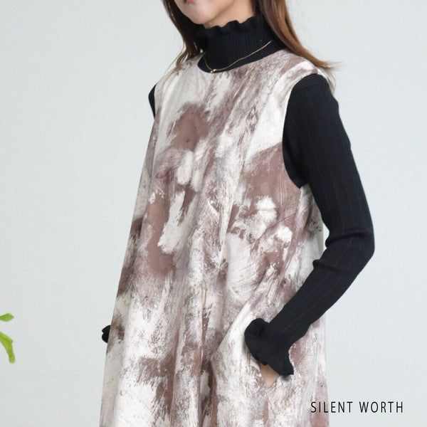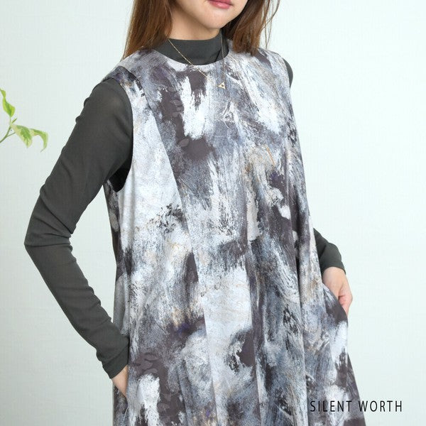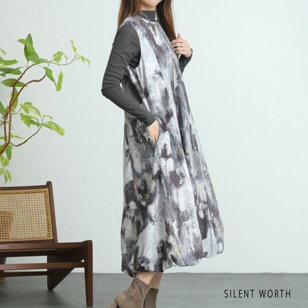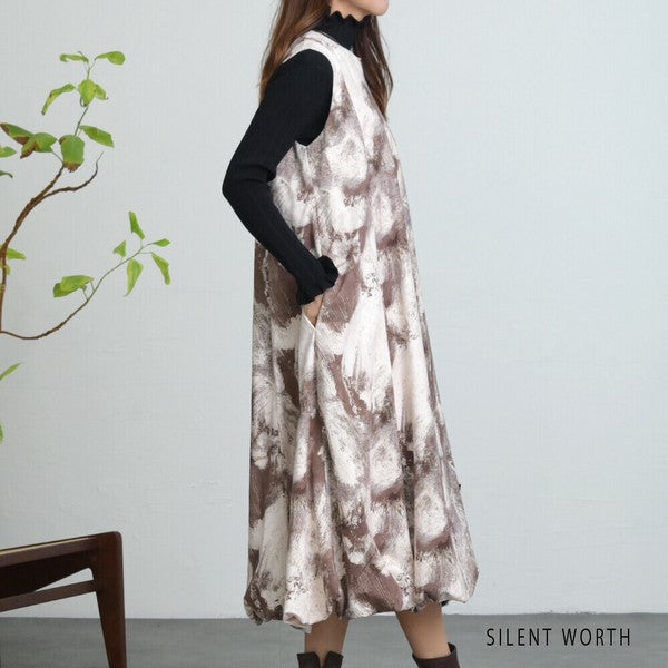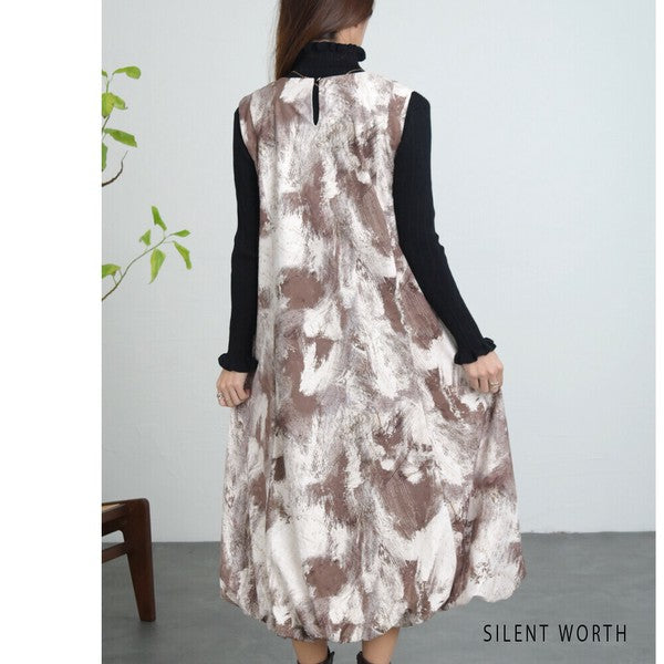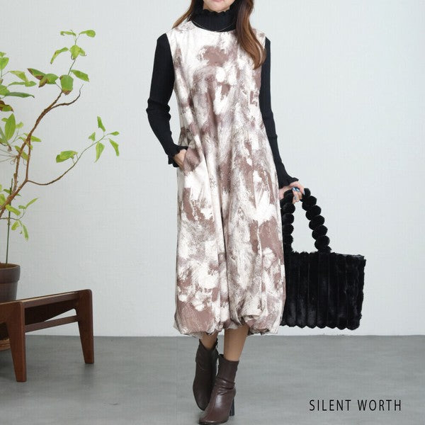 【Mサイズ】ジャカード起毛総柄バルーンワンピース|体型カバー・秋冬・ノースリーブ・C-3197