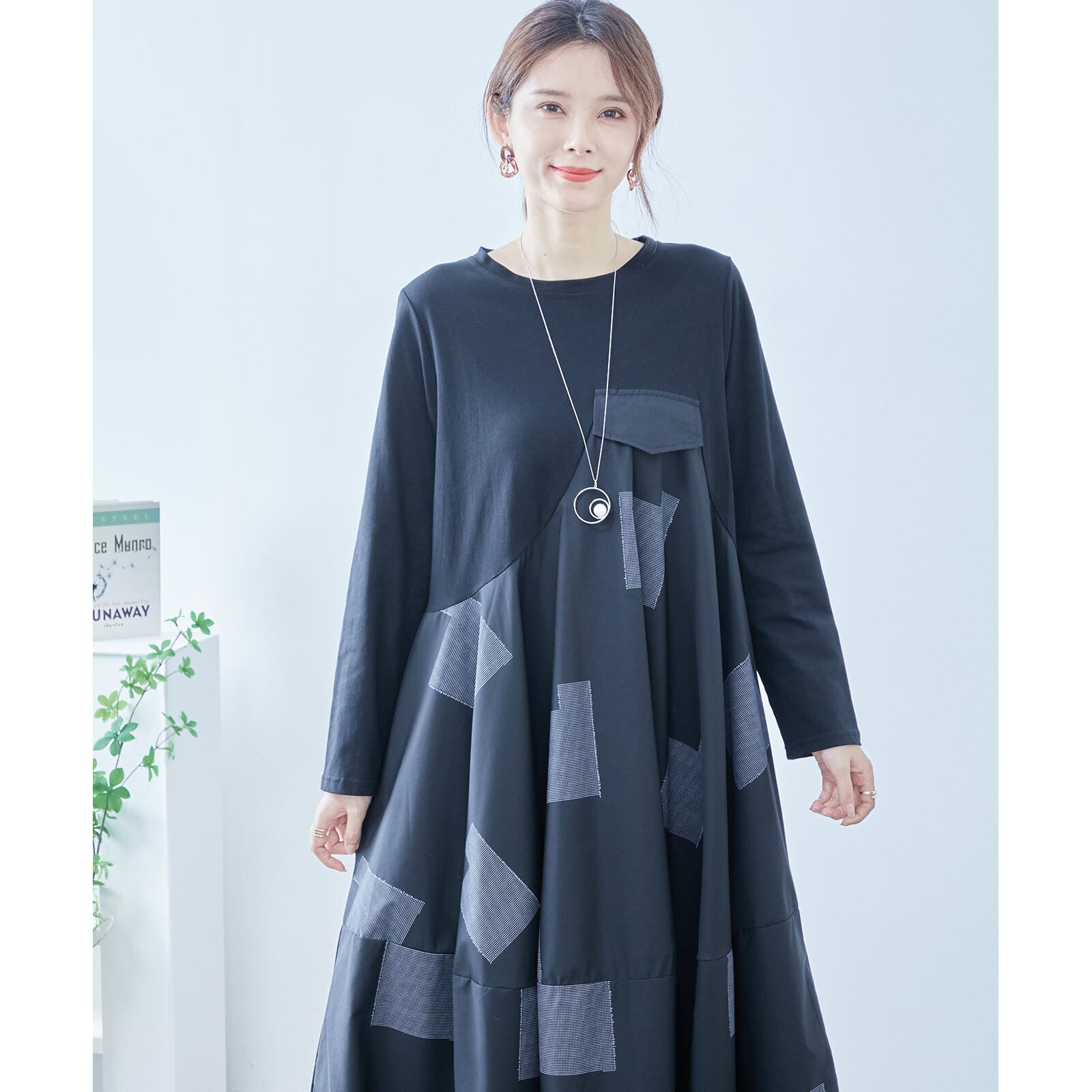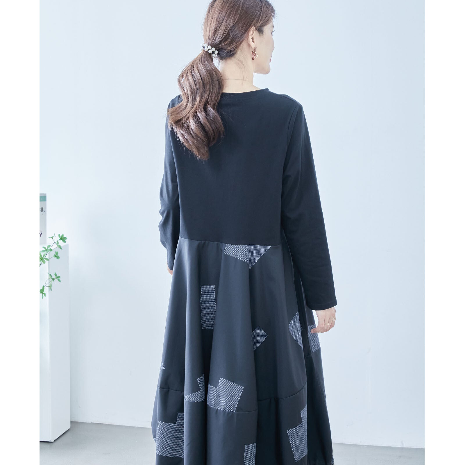 【M】ニット異素材切替ブロッキングワンピース|立体シルエット・体型カバー・SILENT WORTH N-2569