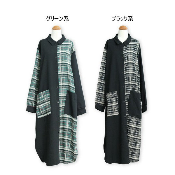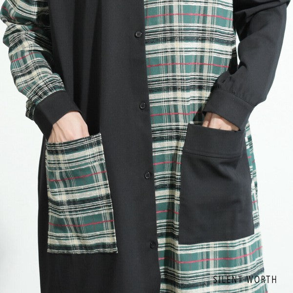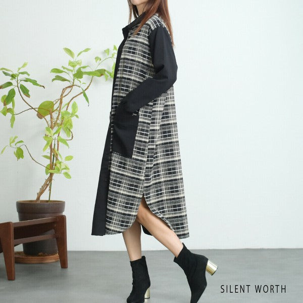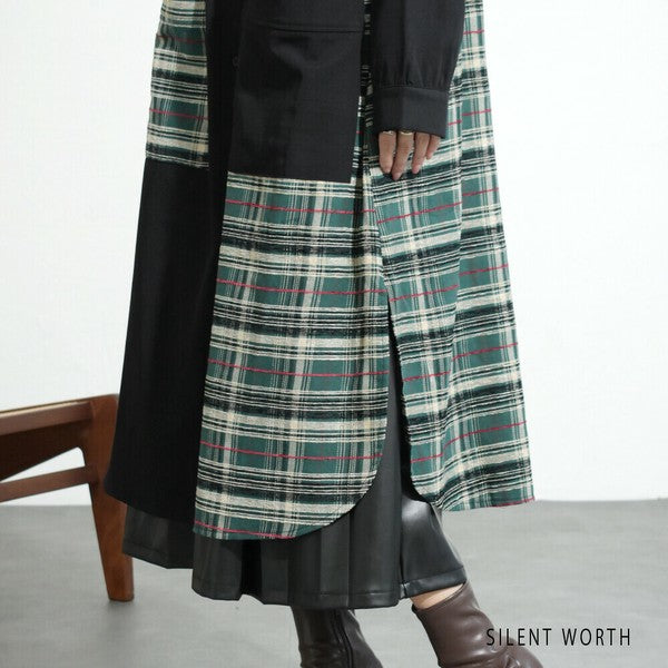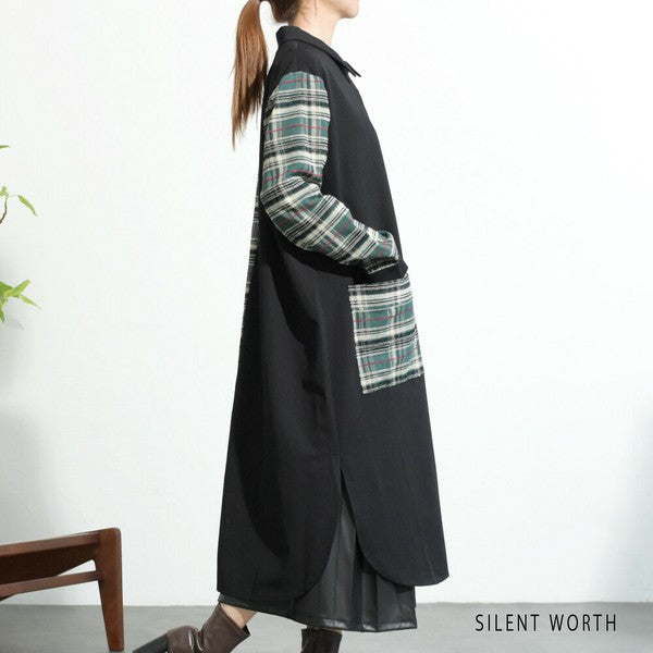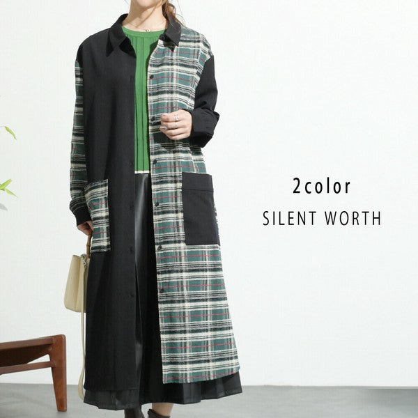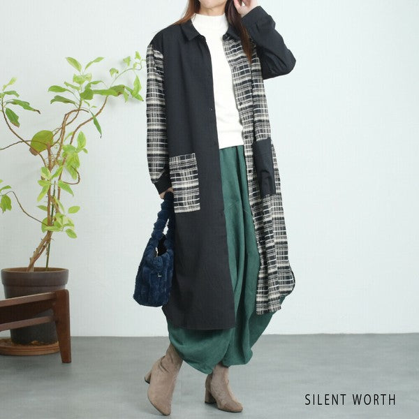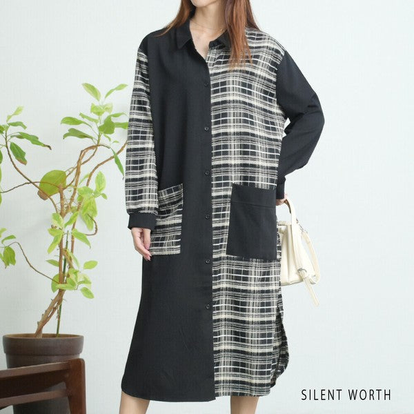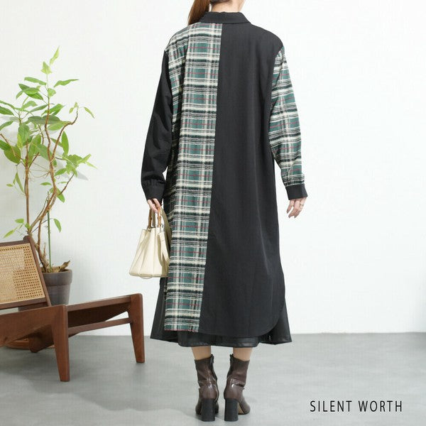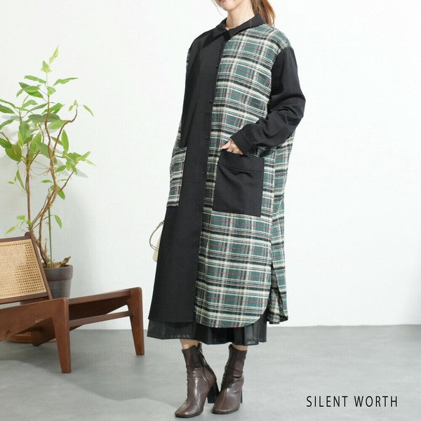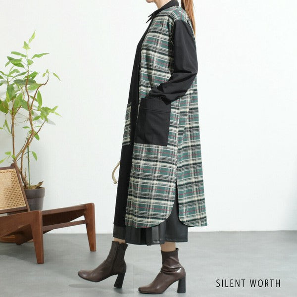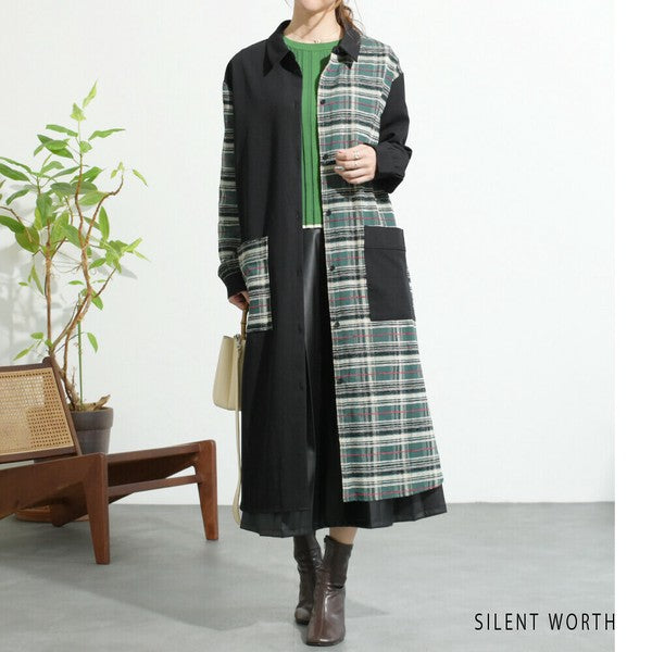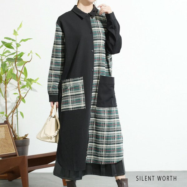 【M】チェック柄パッチワークシャツワンピース|ロング丈・羽織りにも・SILENT WORTH C-3159