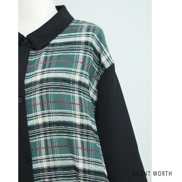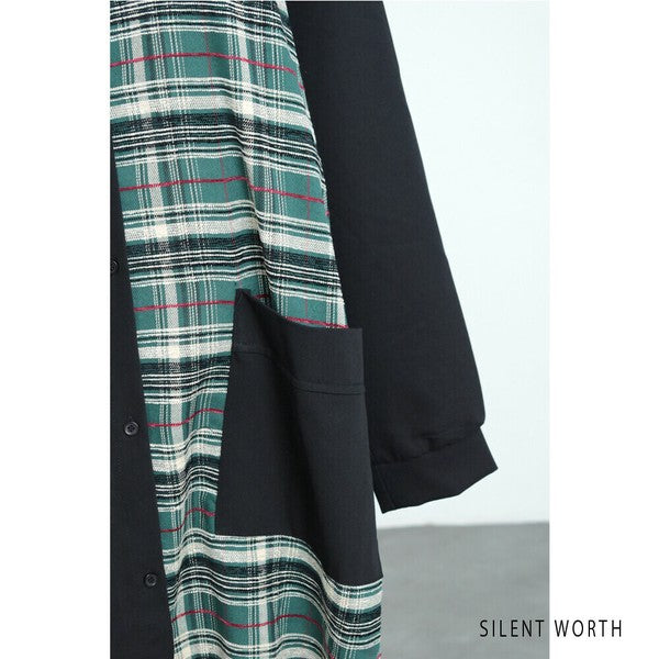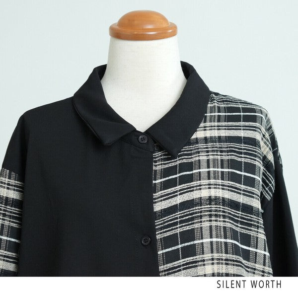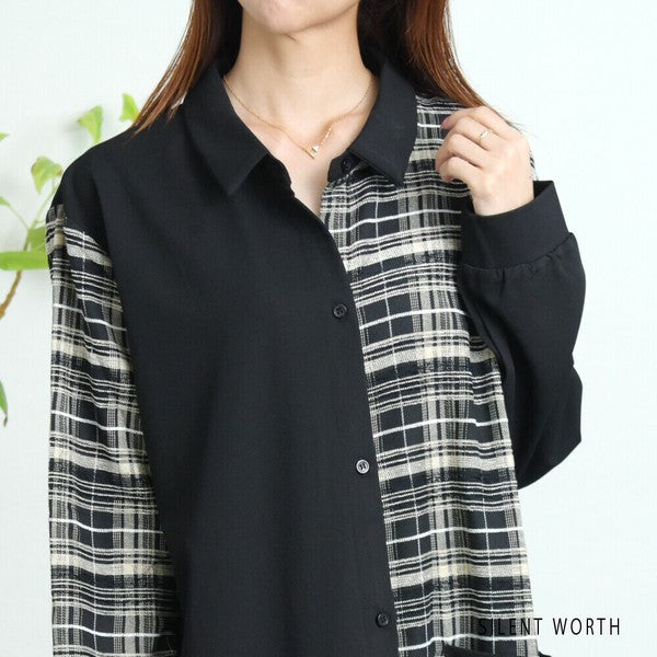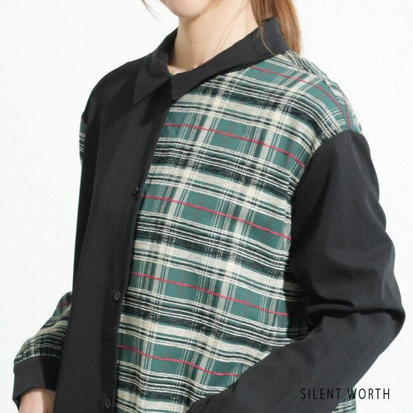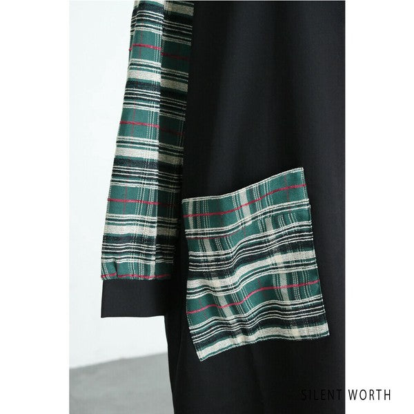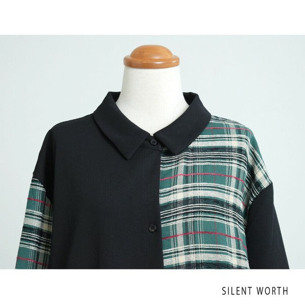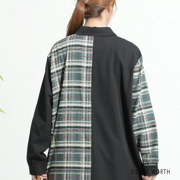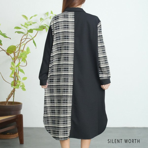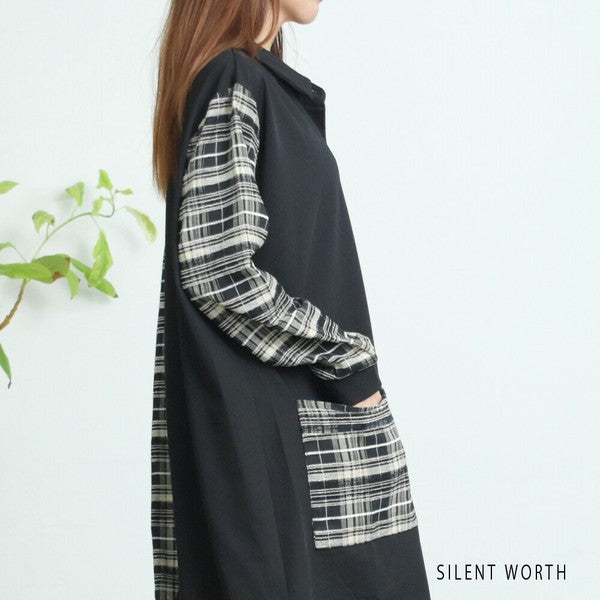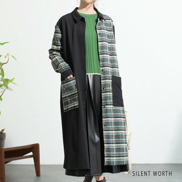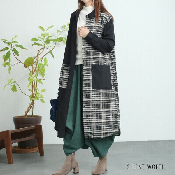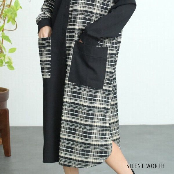 【M】チェック柄パッチワークシャツワンピース|ロング丈・羽織りにも・SILENT WORTH C-3159
