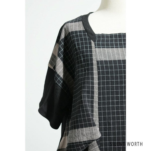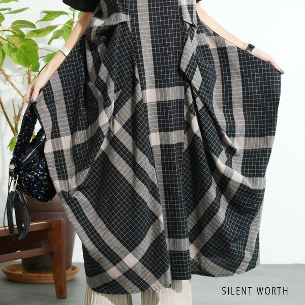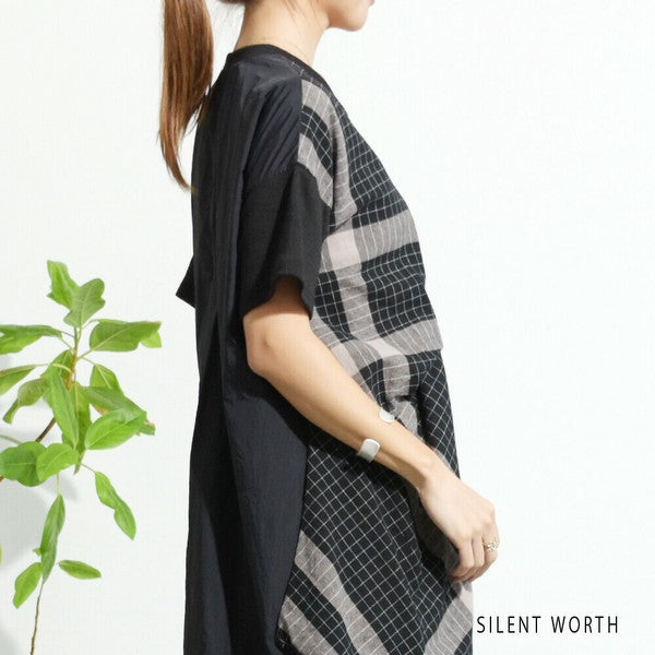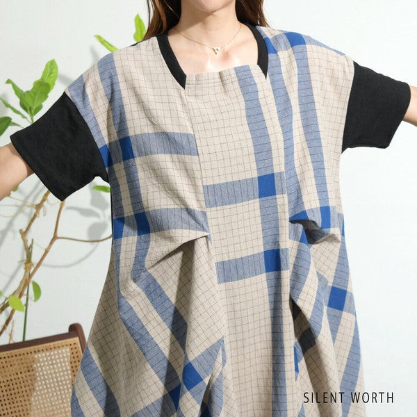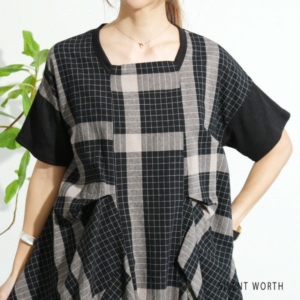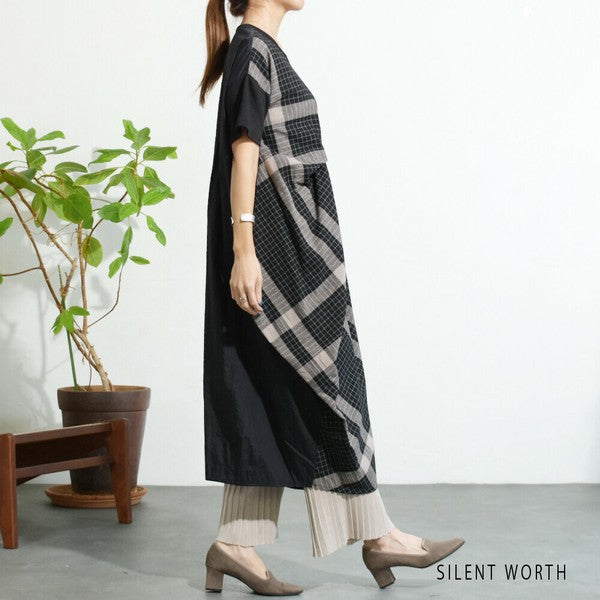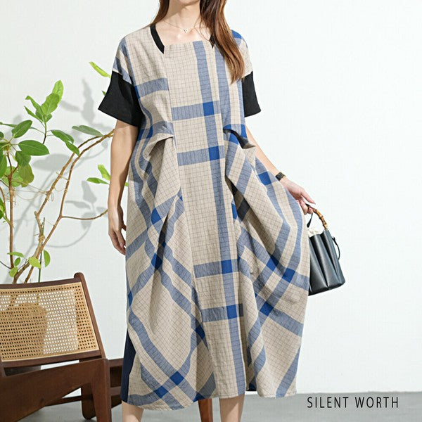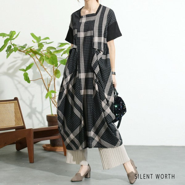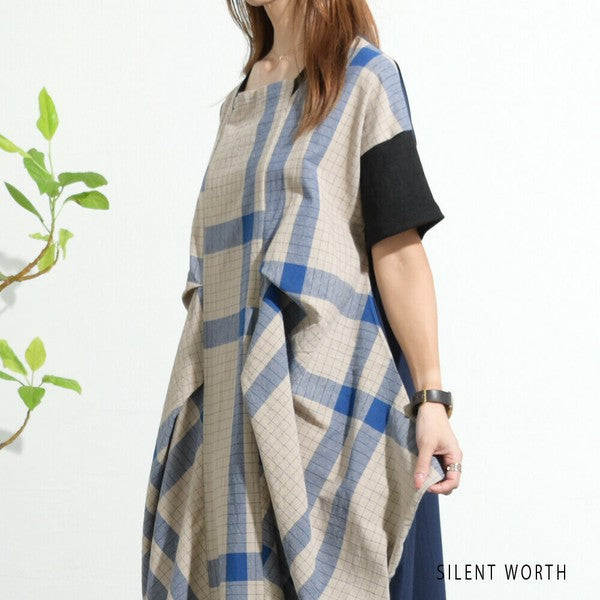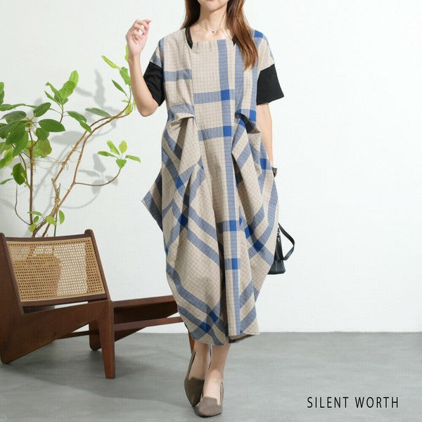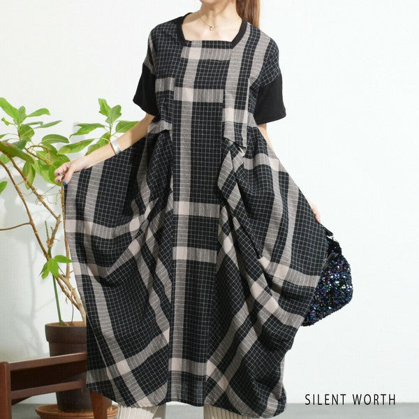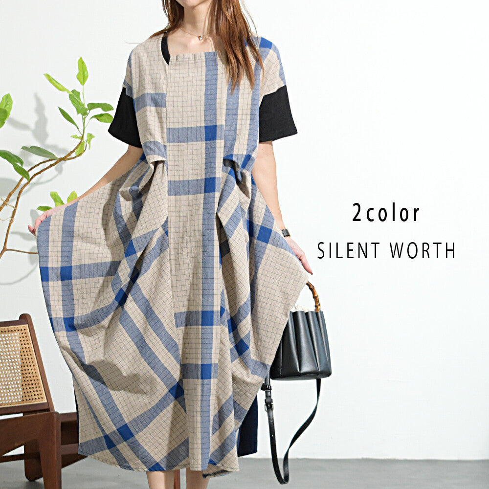 【Mサイズ】綿混チェック柄・タックデザインワンピース|大人カジュアル・体型カバー・SILENT WORTH C-3086