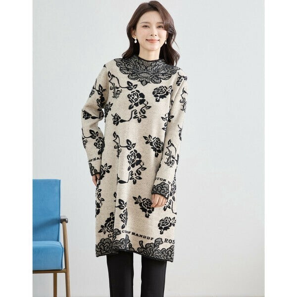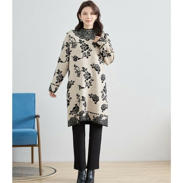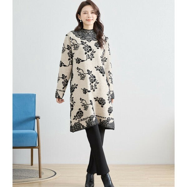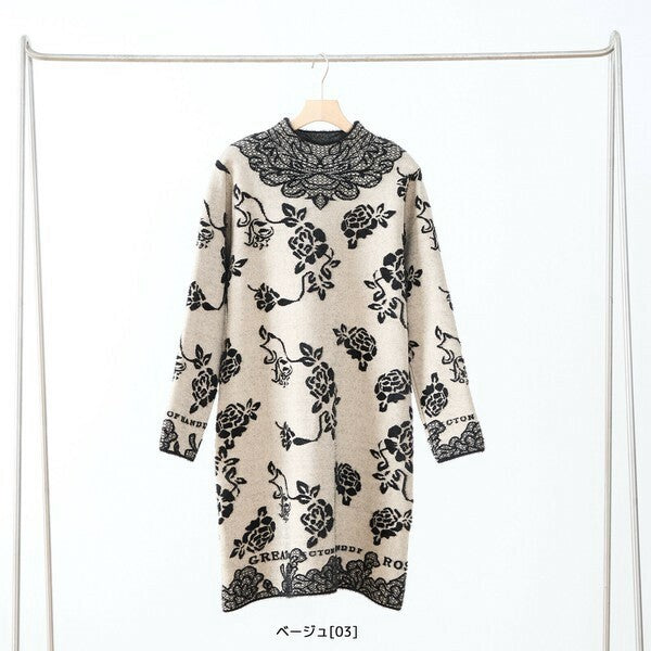 ・美しいフラワージャガード柄が印象的なニットワンピース