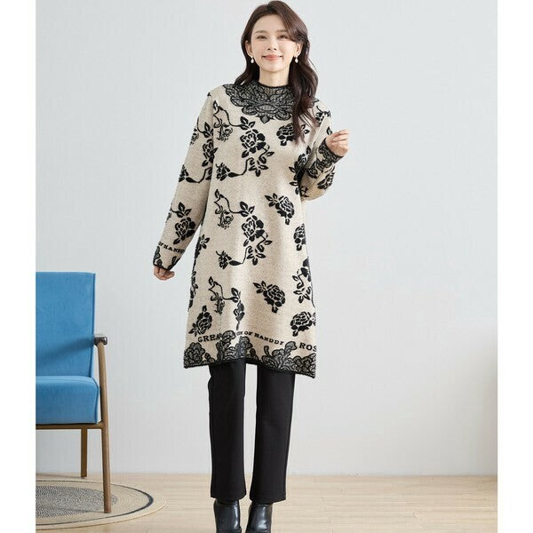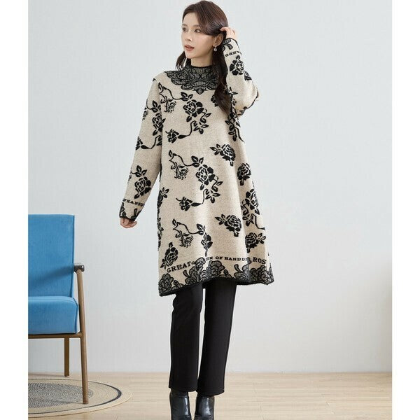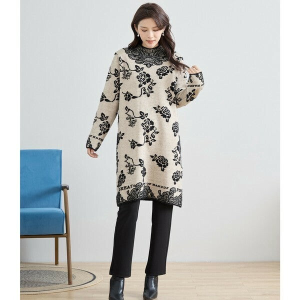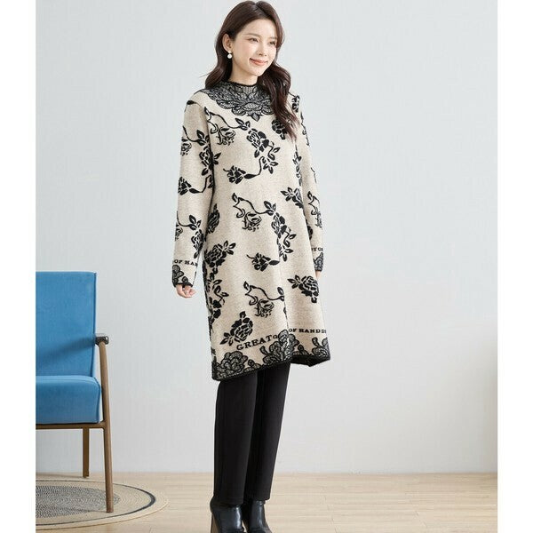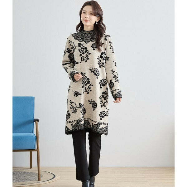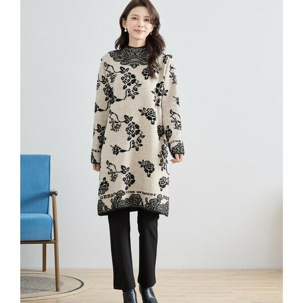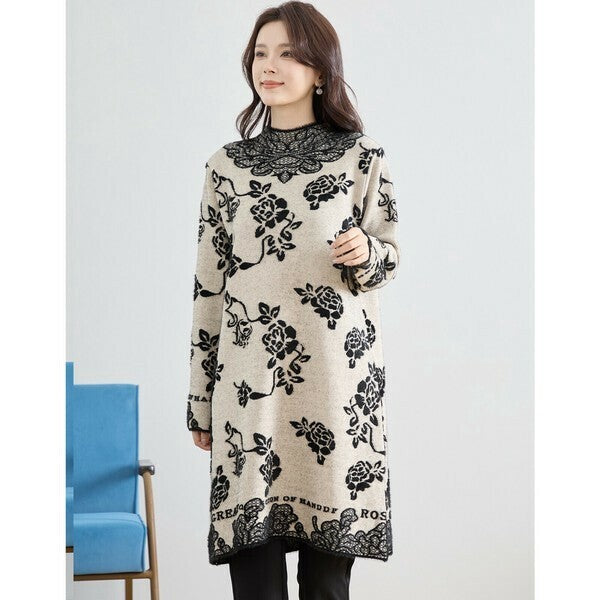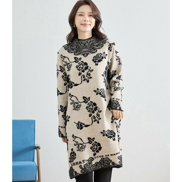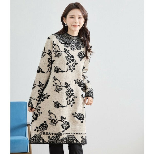 クラシカルな花柄と柔らかな素材感が魅力のニットワンピース。
