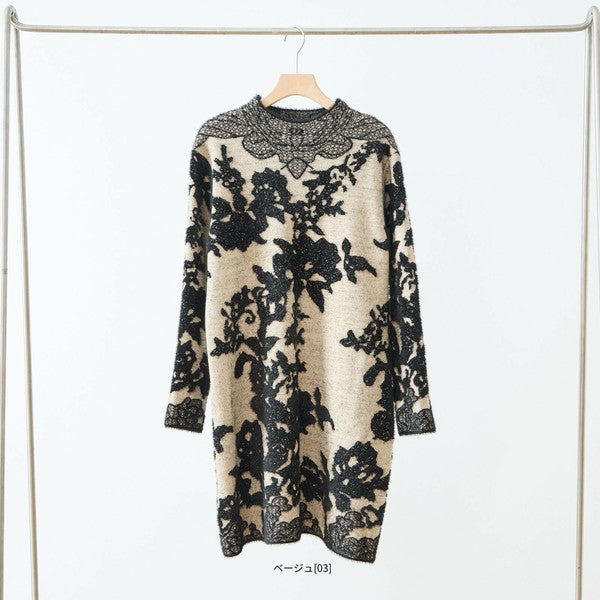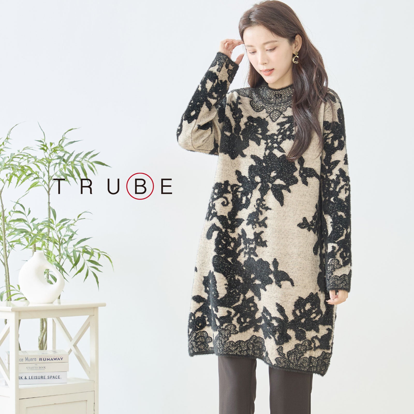 上品なフラワーレース柄が目を惹くTRUBEのニットワンピース。