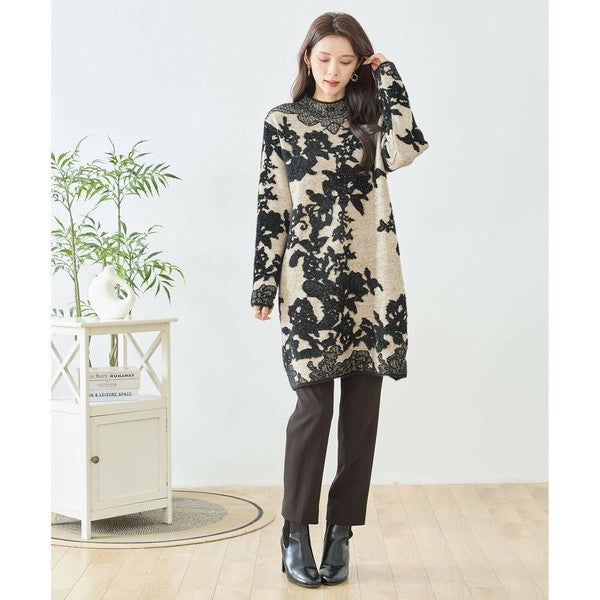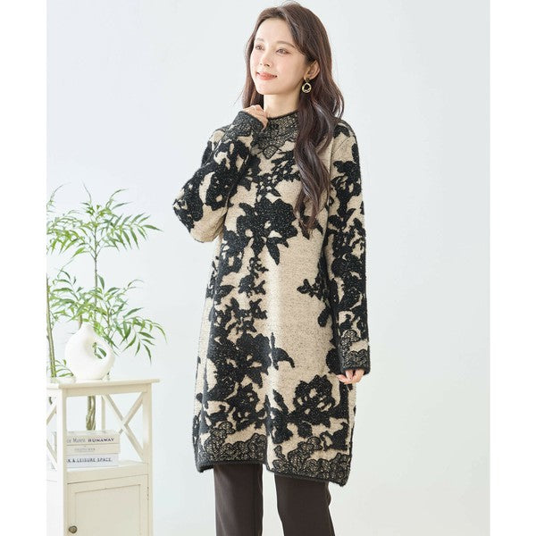 【M〜L】フラワーレースジャカードニットワンピース|上品フェミニン・体型カバー・TRUBE N15-205