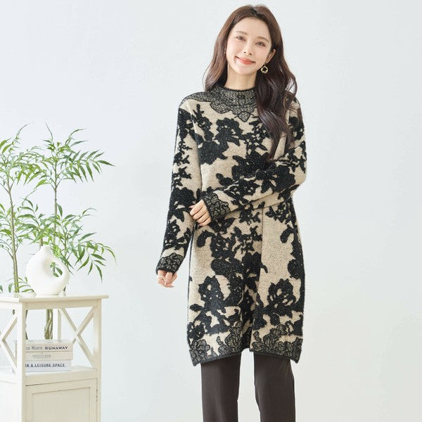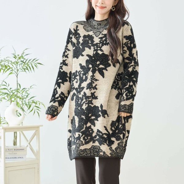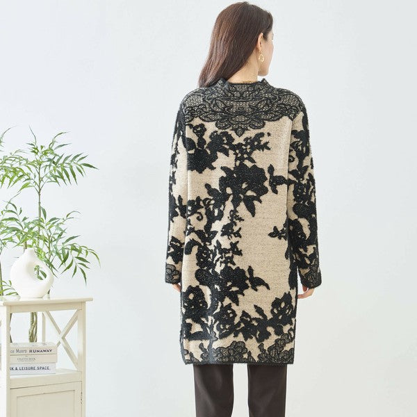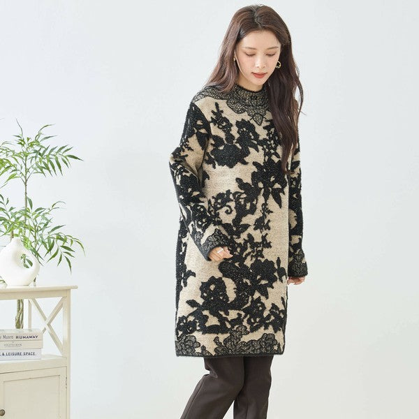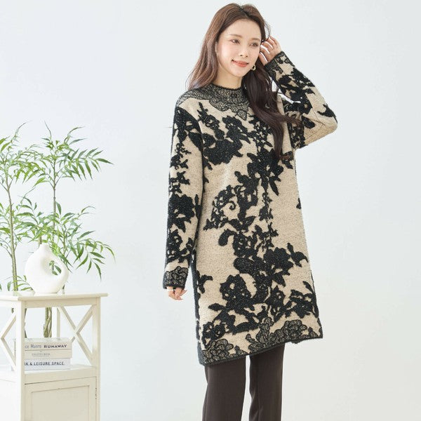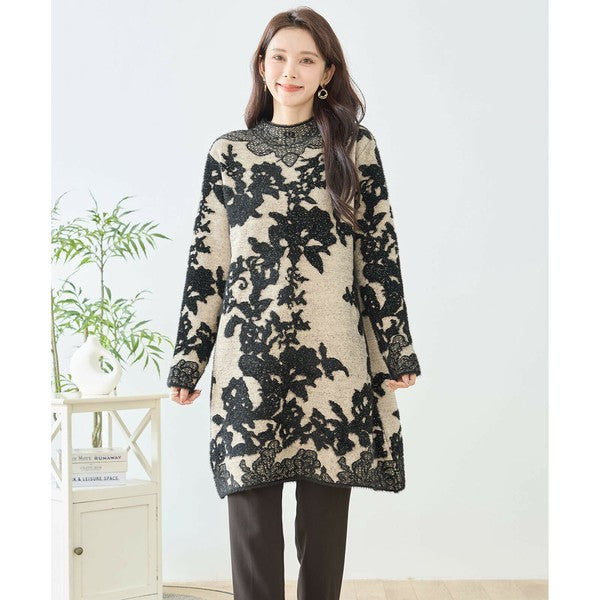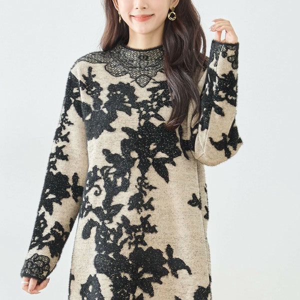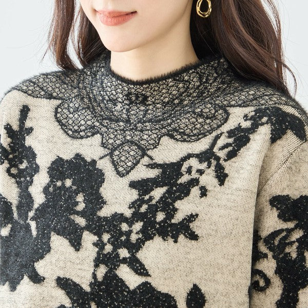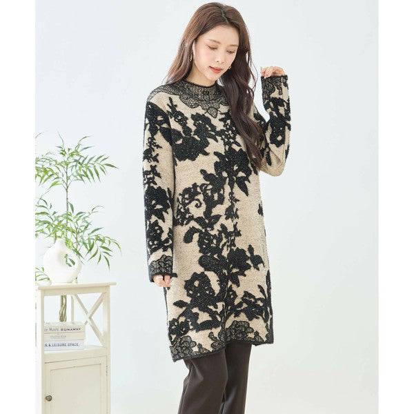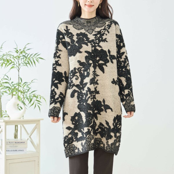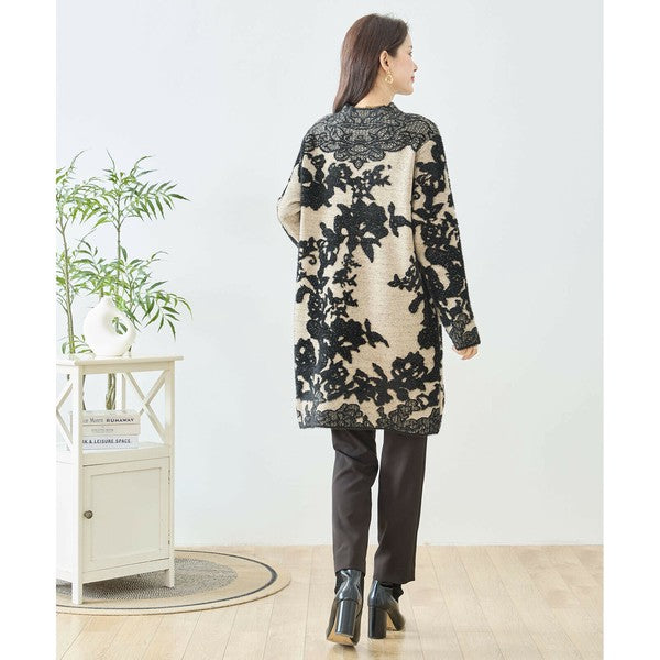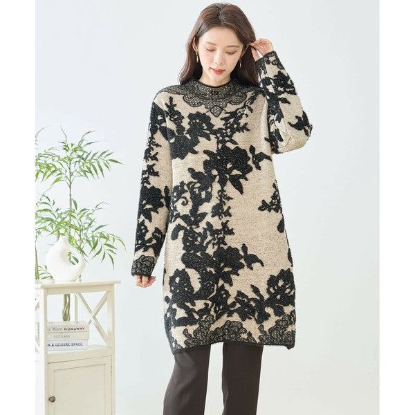 ジャカード編みで立体感を出した上品なフラワーレース柄