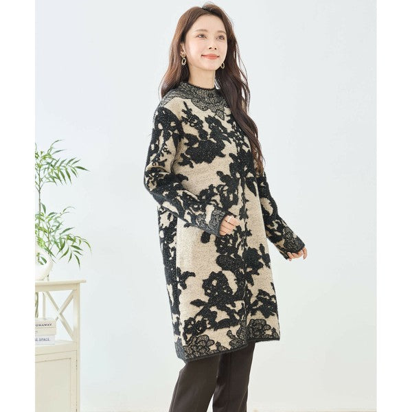 ジャカード編みで立体感を出した繊細な模様が、女性らしくエレガントな印象を演出します。