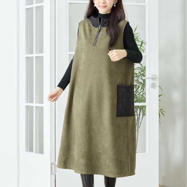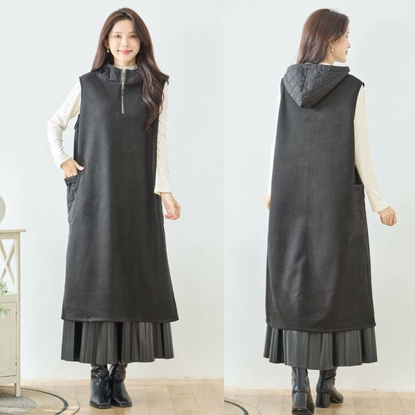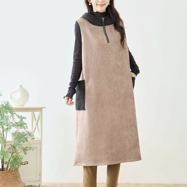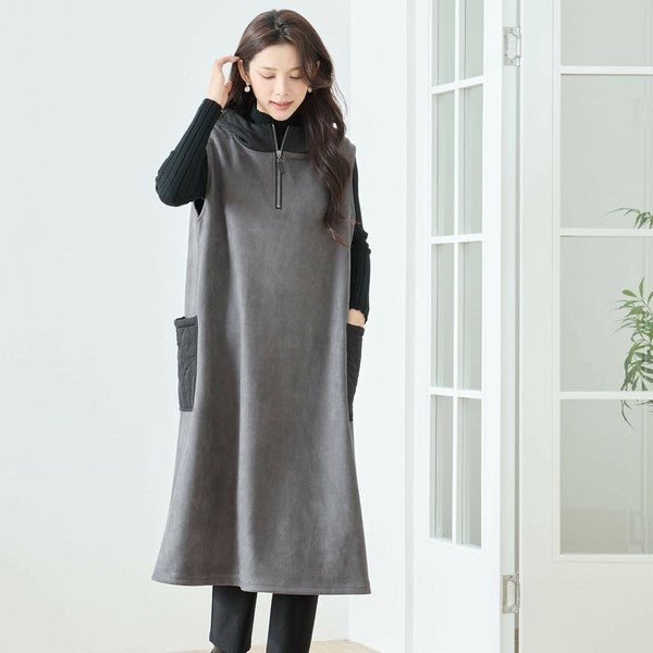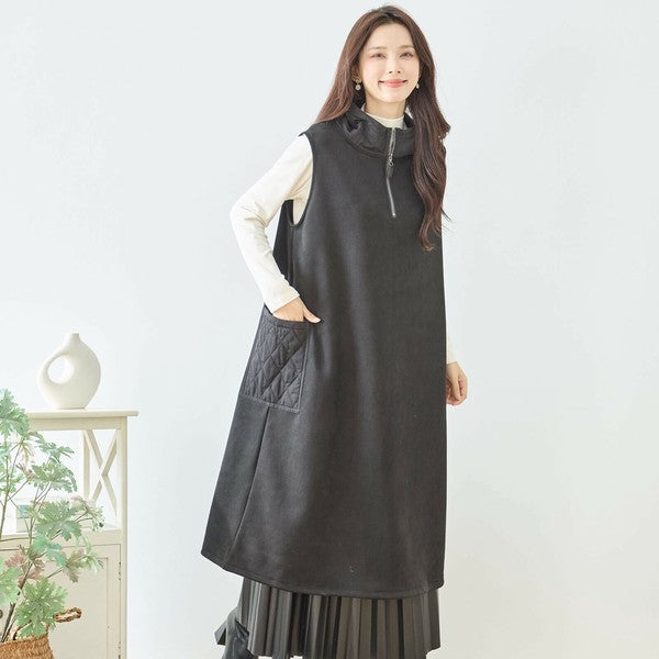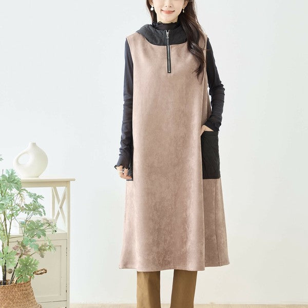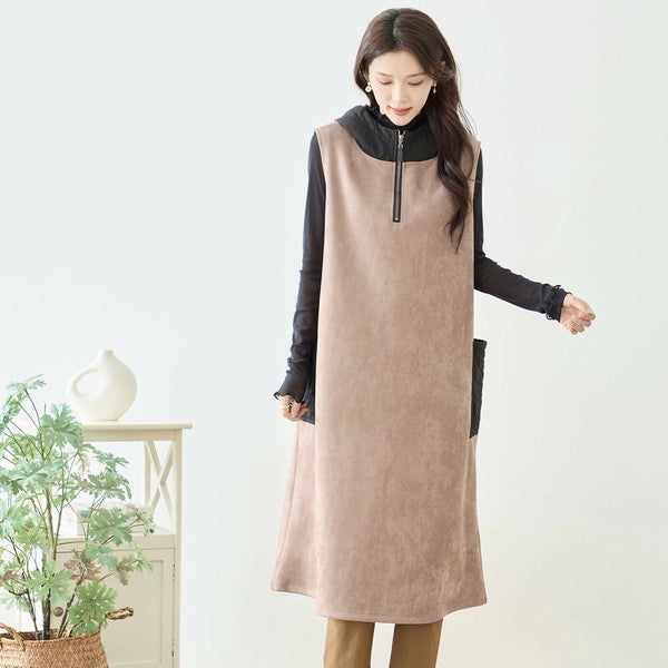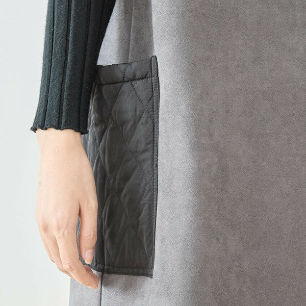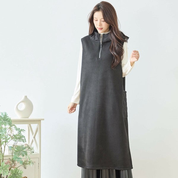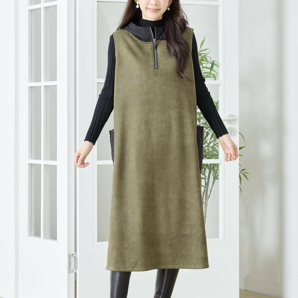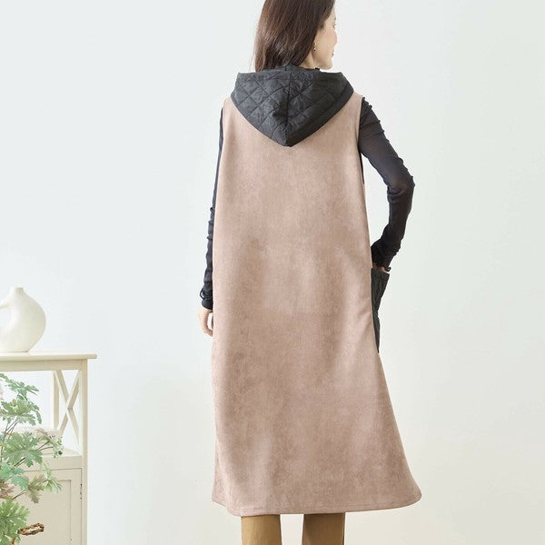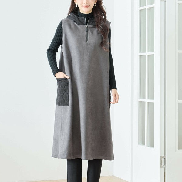 【M〜L】キルティングフードスエード調ジャンスカワンピース|異素材コンビ・体型カバー・TRUBE N83-217