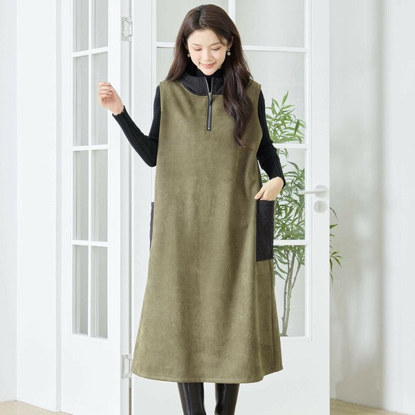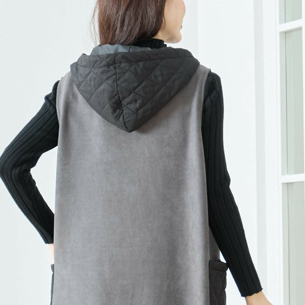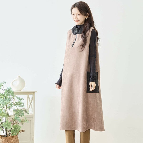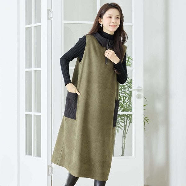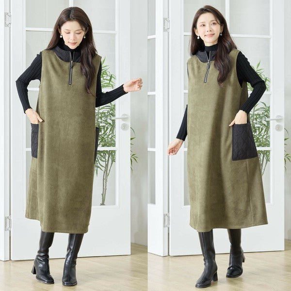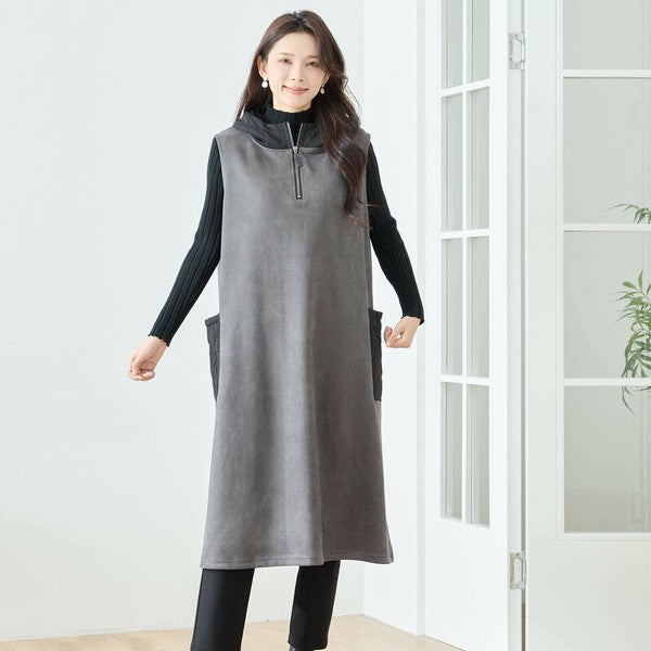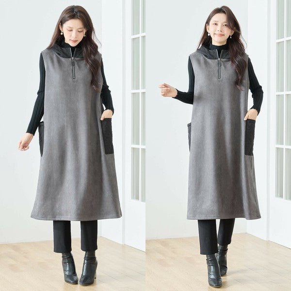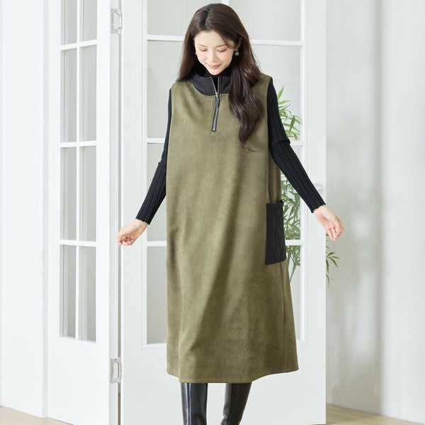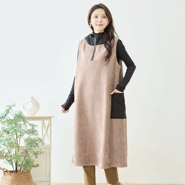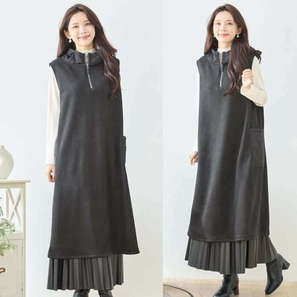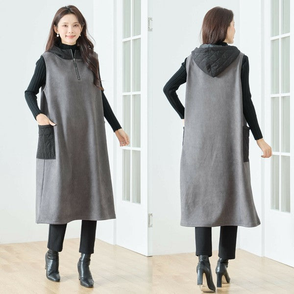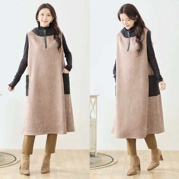 【M〜L】キルティングフードスエード調ジャンスカワンピース|異素材コンビ・体型カバー・TRUBE N83-217