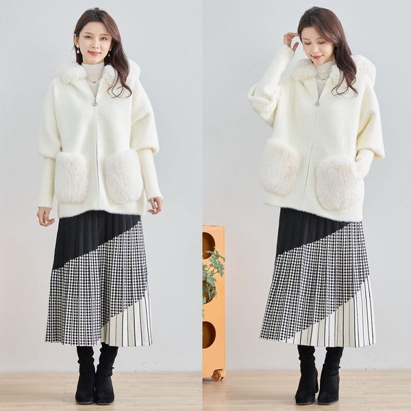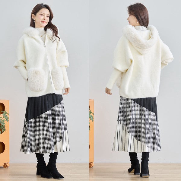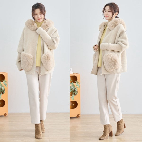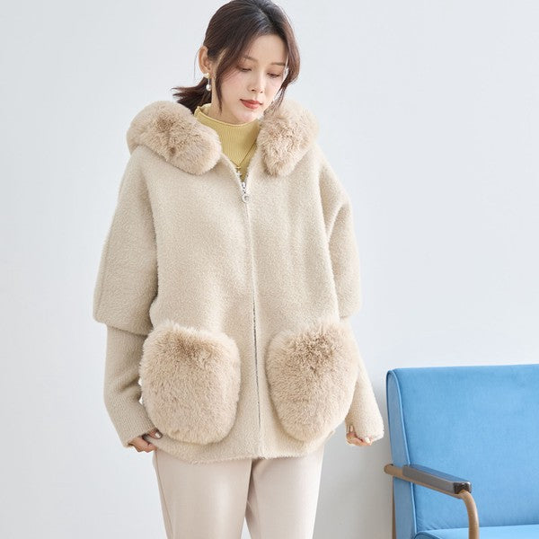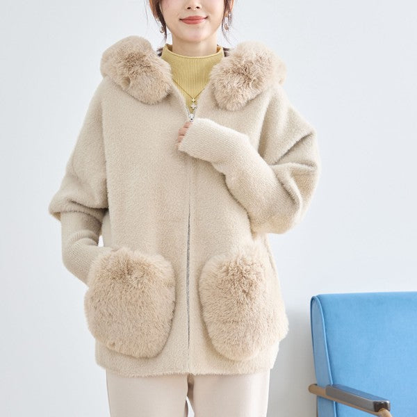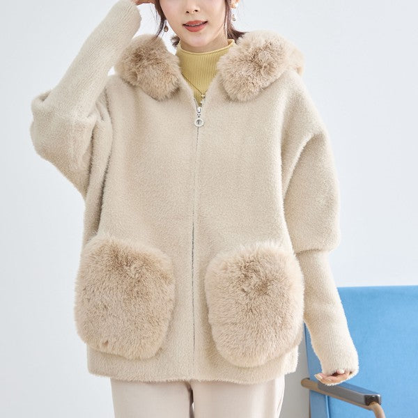 ● フード&ポケットのふわふわフェイクファーがリッチなアクセント